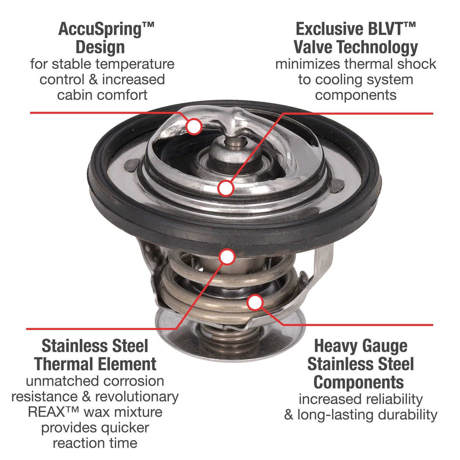 - UltraStat™ Thermostats are the toughest thermostats on the market. All heavy gauge stainless steel construction provides long-life durability, as well as complete corrosion resitance. Exclusive BLVT™ Valve technology minimizes thermal shock to cooling system components.