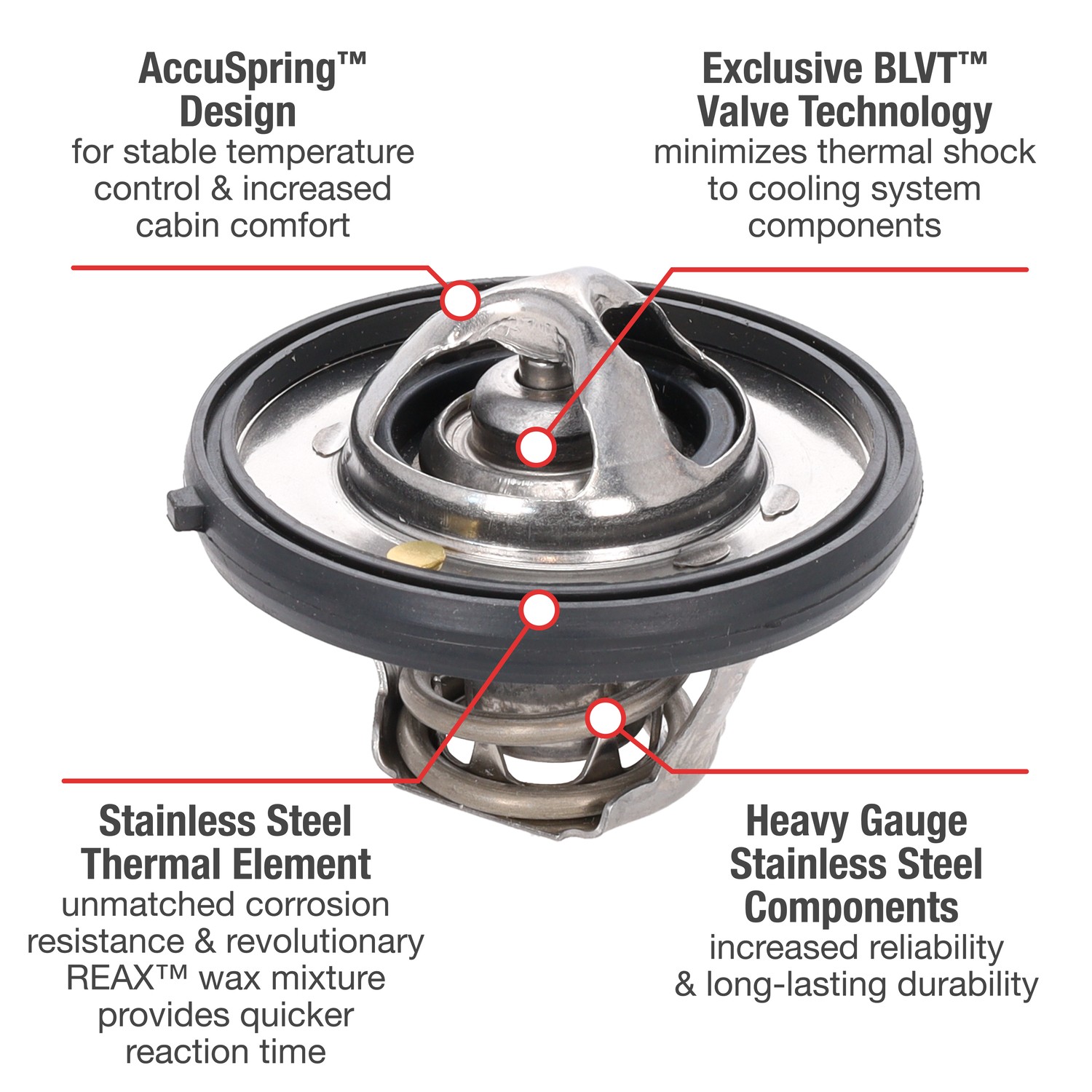- UltraStat™ Thermostats are the toughest thermostats on the market. All heavy gauge stainless steel construction provides long-life durability, as well as complete corrosion resitance. Exclusive BLVT™ Valve technology minimizes thermal shock to cooling system components.