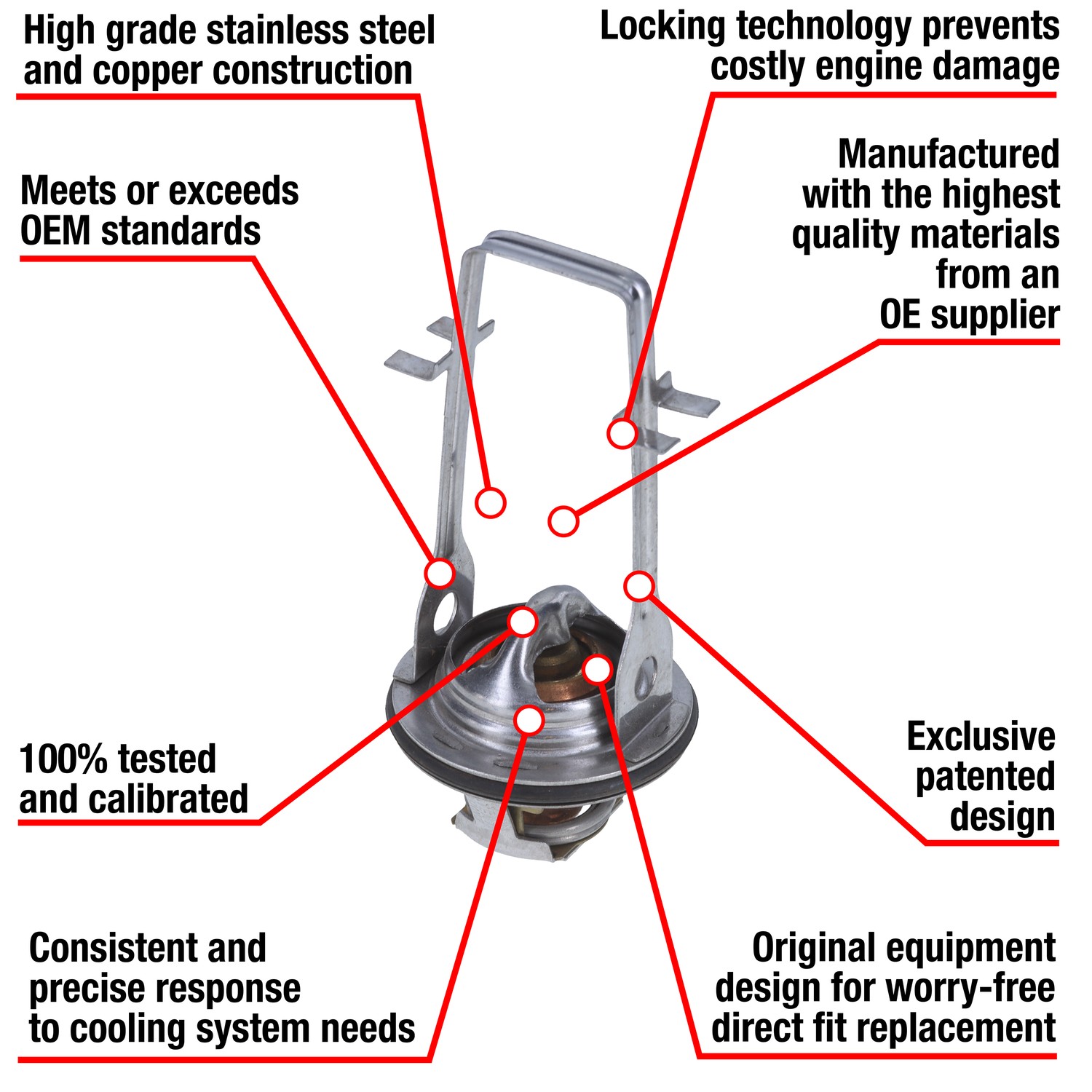 - Manufactured with OEM quality materials and safety standards by an OE Supplier. Stands up to even the most demanding automotive cooling systems. Manufactured with OEM specifications and processes. Copper case and wax compound assures rapid response to temperature changes in the coolant.