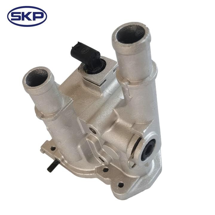- The SKP Engine Coolant Thermostat Housing is a replacement part for your vehicle's cooling system. It regulates coolant flow by opening and closing in response to engine temperature. Manufactured to meet or exceed OE standards, this housing ensures proper coolant circulation and temperature control. SKP Engine Coolant Thermostat Housings are made from durable materials to resist corrosion and leaks.