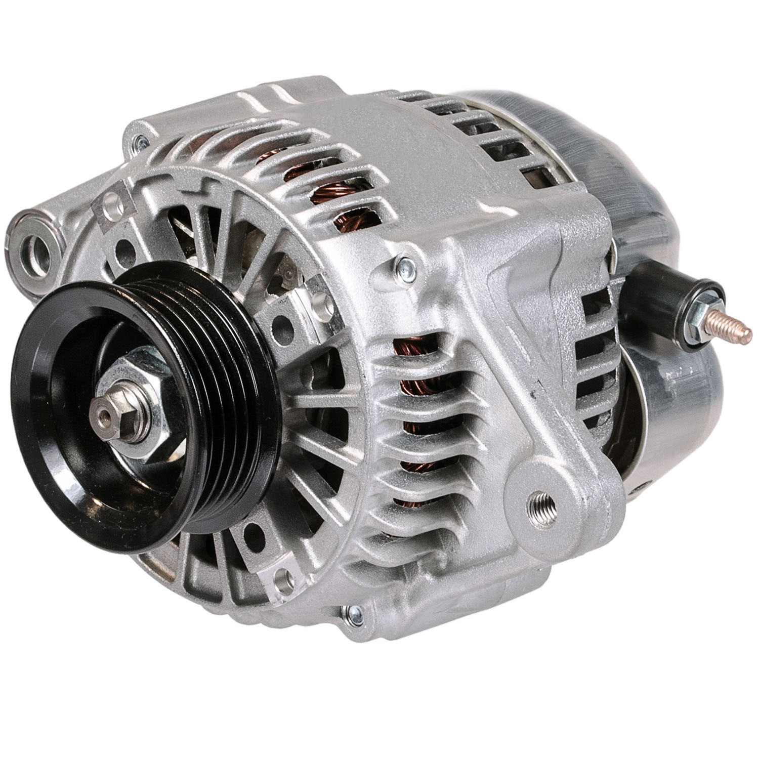 - DENSO alternators are not only original equipment on many of the world's top production cars; they are a favorite in motorsports as well, where their light weight, high efficiency, and durability under the most demanding conditions make them the natural choice. Remanufactured DENSO alternators go through a grueling process. Stators and rectifiers are tested to 300 volts, while rotors are submitted to 600 volts, all to ensure reliable performance. Rotor slip rings are buffed to an 8 micron surface finish, with runout limited to 20 microns, minimizing brush wear and abrasion. Bearings are validated to OE standards and loaded with premium OE standard lubricants. New or remanufactured, a DENSO alternator is a quality component. Offered in versions from 40 to 160 amperes and beyond for hundreds of specific vehicle applications, all alternators meet DENSO's rigorous First Time Fit standards. Contemporary cars employ dozens of sophisticated electronic systems from bumper to bumper, placing heavy demands on the charging system. The alternator is no place to cut corners. DENSO First Time Fit alternators meet or exceed all manufacturer standards, mount properly with a minimum of installation issues, and provide years of reliable service. Features. Premium cores and precise OE assembly benchmarks; Design to meet the grueling heat and electrical requirements; First Time Fit provides perfect mounting with no belt/pulley alignment issues; Benefits. Service professionals preferred DENSO's alternators for a trouble free solution; OE quality fit, appearance, and durability; Full compatibility with sensitive electronics systems; Compact and lightweight design