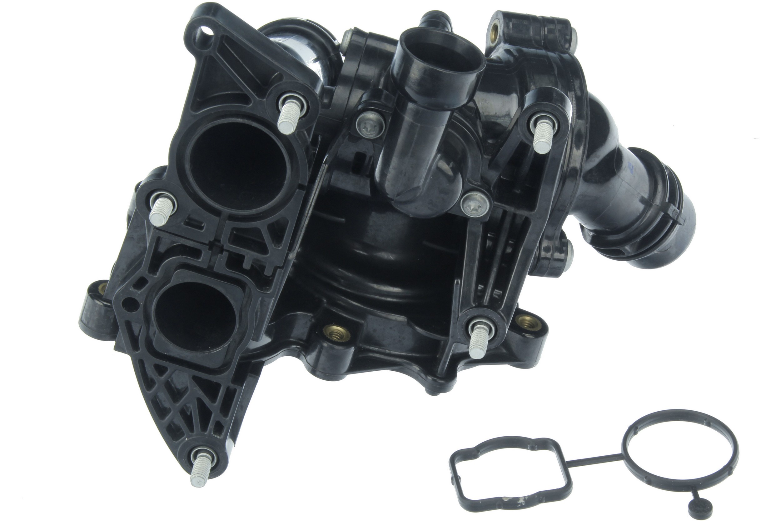 - Thermostat housing assembly is manufactured to factory housing dimensions for easy bolt-on installation and reliable hose connections