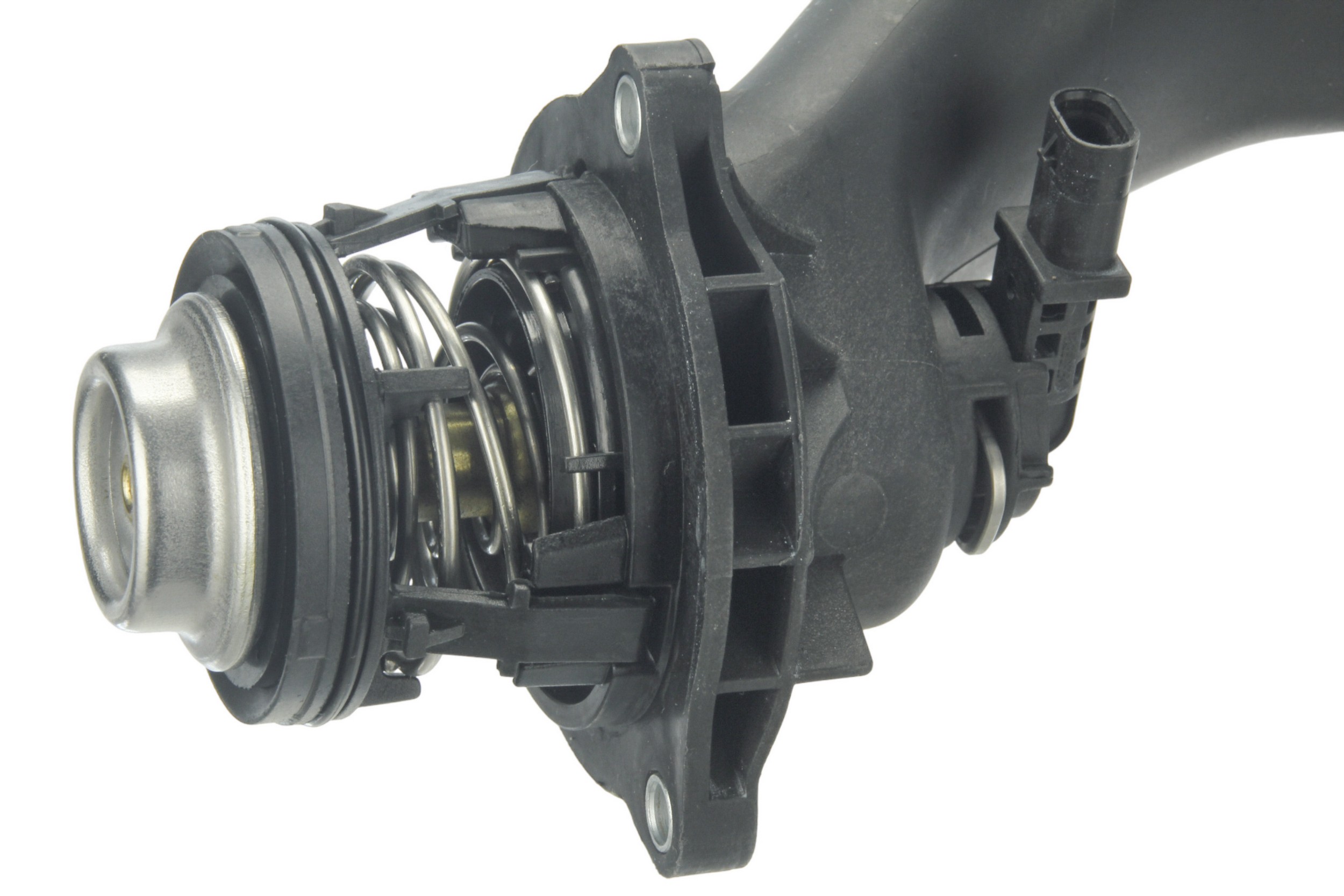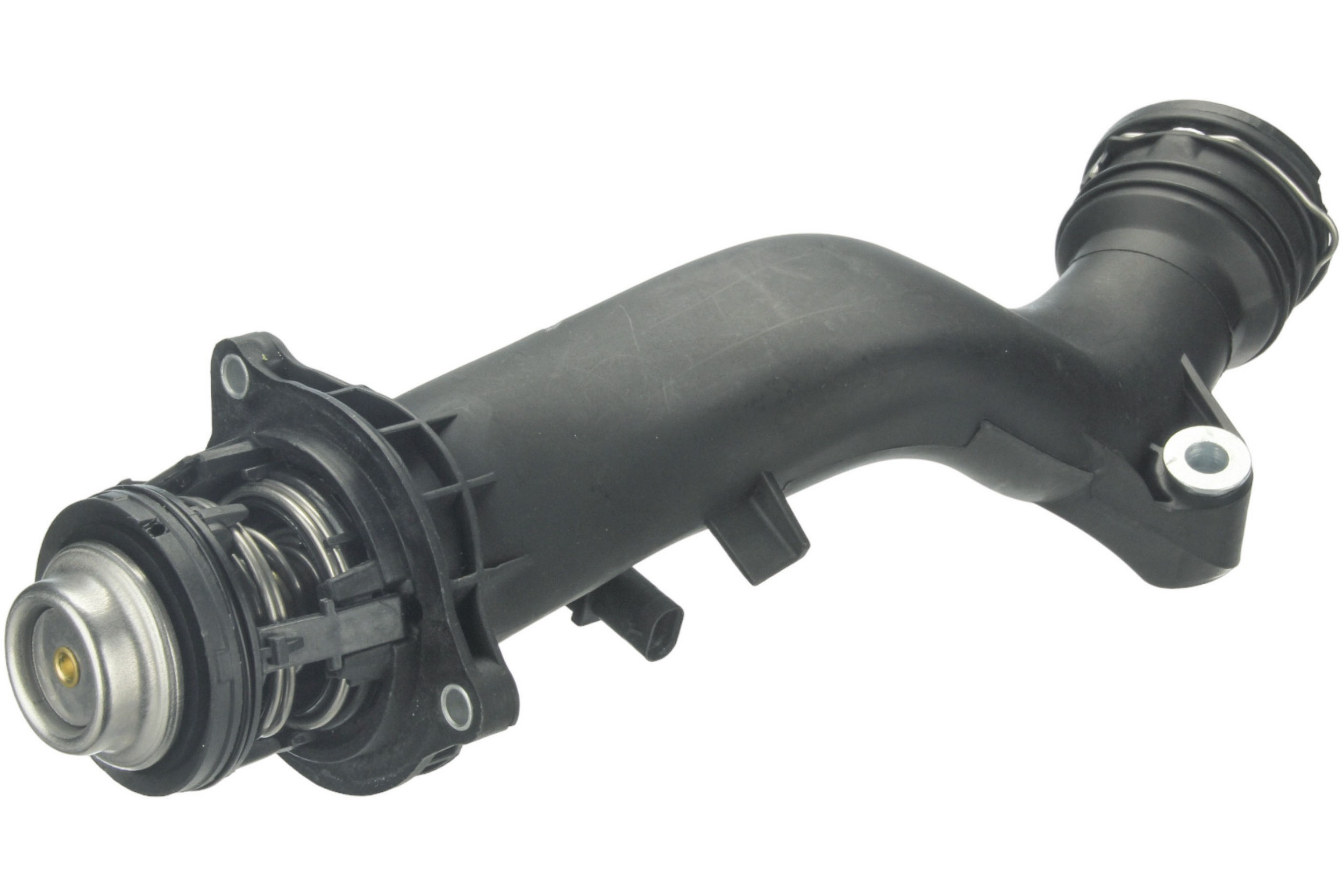 - Thermostat housing assembly is manufactured to factory housing dimensions for easy bolt-on installation and reliable hose connections