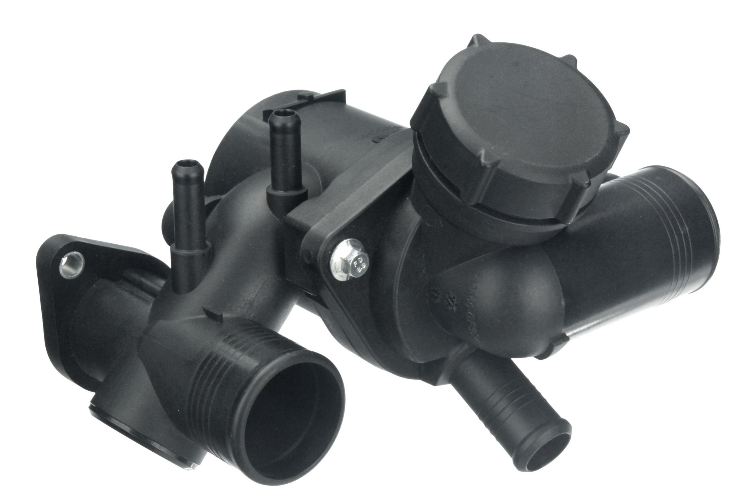 - Thermostat housing assembly is manufactured to factory housing dimensions for easy bolt-on installation and reliable hose connections