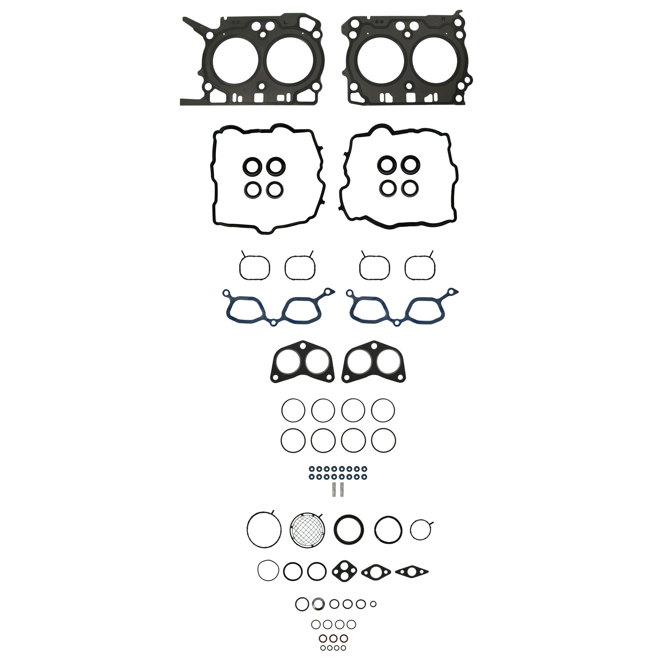 2011-2018 Subaru Forester (Engine Designation: FB25BA, FB25 & Liter: 2.5 & Engine(cc): 2498 & Engine(ci): 152 & Cylinder: 4 & Block: H & Bore(in): 3.70 & Bore(mm): 94.0 & Stroke(in): 3.54 & Stroke(mm): 90.0 / Qualifier: Head Bolts Must be Replaced, Head Bolts Not Included, Premium Valve Stem Seals Included, PermaDry Molded Rubber Valve Cover Gasket(s) Included); 2013-2019 Subaru Legacy (Liter: 2.5 & Engine(cc): 2498 & Engine(ci): 152 & Cylinder: 4 & Block: H & Bore(in): 3.70 & Bore(mm): 94.0 & Stroke(in): 3.54 & Stroke(mm): 90.0 / Qualifier: Head Bolts Must be Replaced, Head Bolts Not Included, Premium Valve Stem Seals Included, PermaDry Molded Rubber Valve Cover Gasket(s) Included); 2013-2019 Subaru Outback (Liter: 2.5 & Engine(cc): 2498 & Engine(ci): 152 & Cylinder: 4 & Block: H & Bore(in): 3.70 & Bore(mm): 94.0 & Stroke(in): 3.54 & Stroke(mm): 90.0 / Qualifier: Head Bolts Must be Replaced, Head Bolts Not Included, Premium Valve Stem Seals Included, PermaDry Molded Rubber Valve Cover Gasket(s) Included)