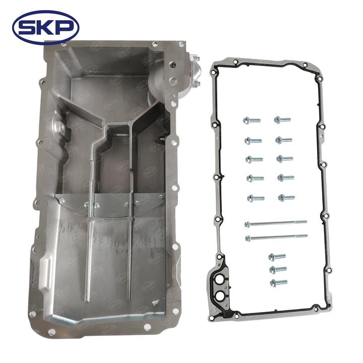 - SKP's Engine Oil Pan is a replacement part for the oil pan on your vehicle's engine. It acts as a reservoir for the engine oil, protecting it from contaminants and ensuring proper lubrication throughout the engine. A worn or damaged oil pan can lead to oil leaks and potential engine damage. This SKP oil pan is manufactured to meet OE standards for quality and durability.