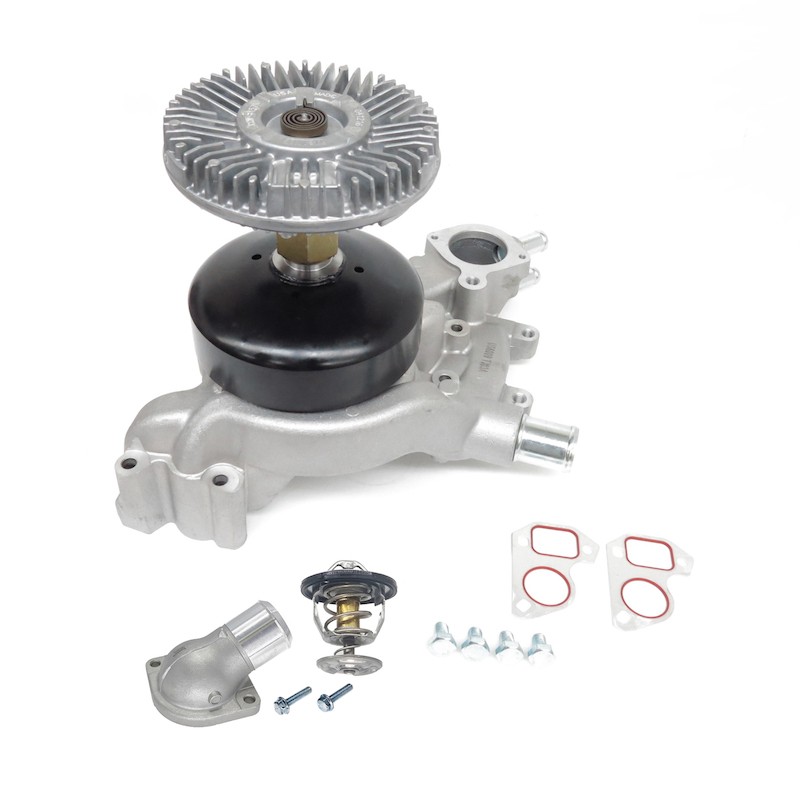 - One kit for the proper replacement of a water pump or fan clutch, Complete mechanical cooling parts replacement, Water pump and fan clutch are connected on the engine and work together to provide cooling
