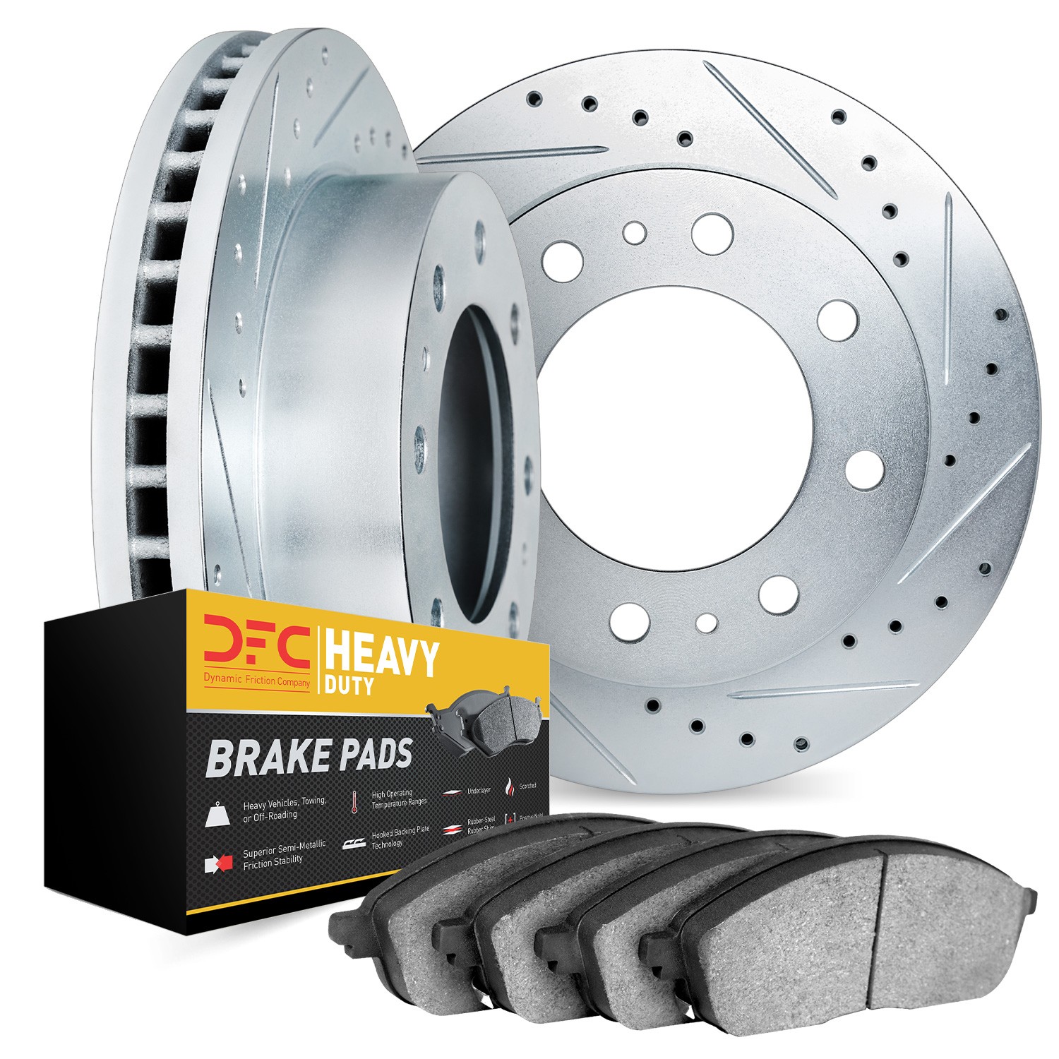 - DFC Brake Rotor - Drilled & Slotted - Silver- HD Brake Pad
