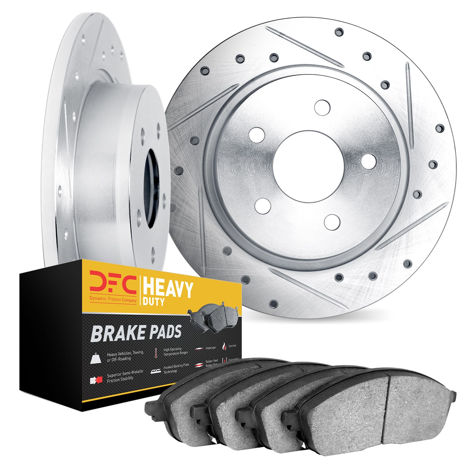 - DFC Brake Rotor - Drilled & Slotted - Silver- HD Brake Pad