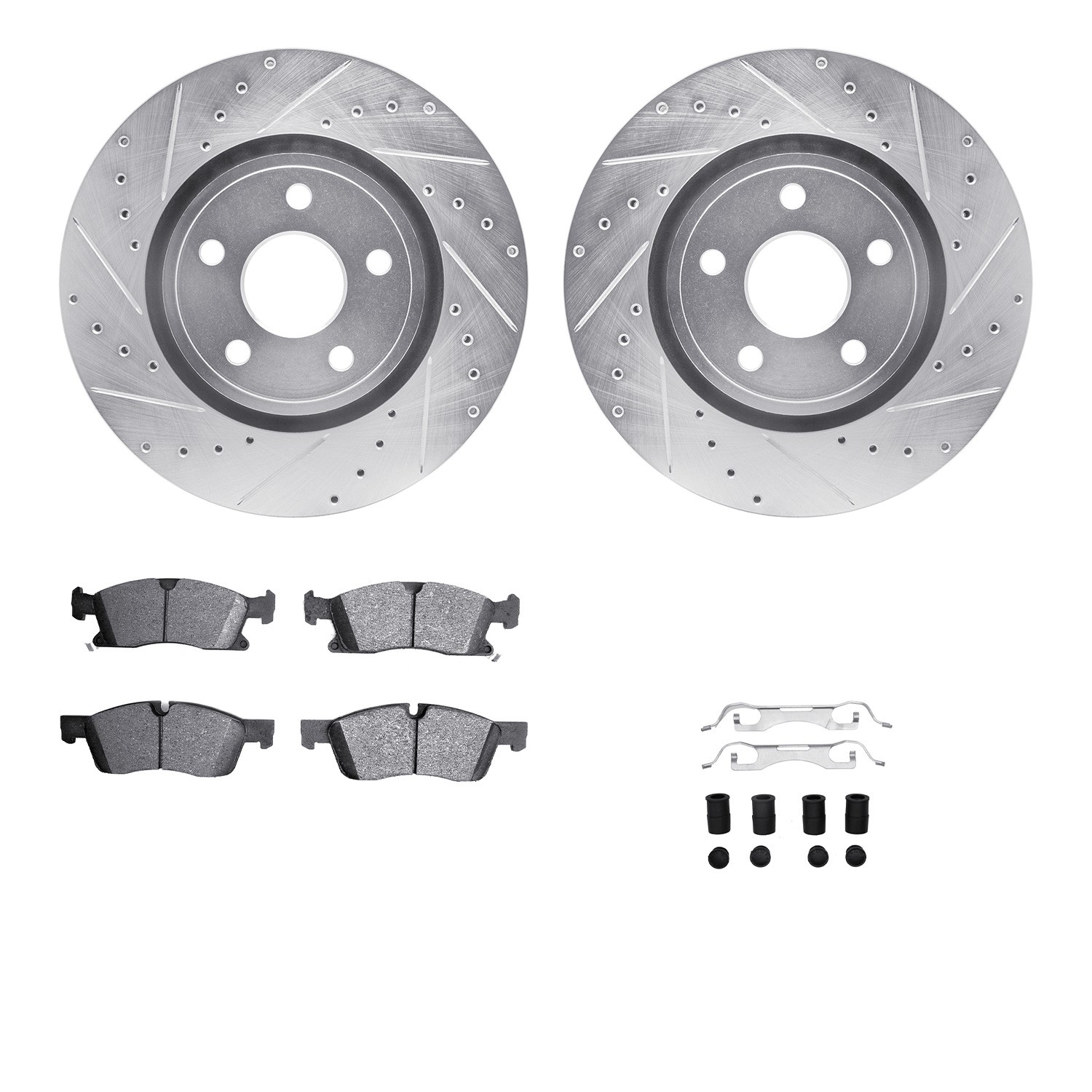 - DFC Brake Rotor - Drilled & Slotted - Silver- HD Brake Pad - Hardware