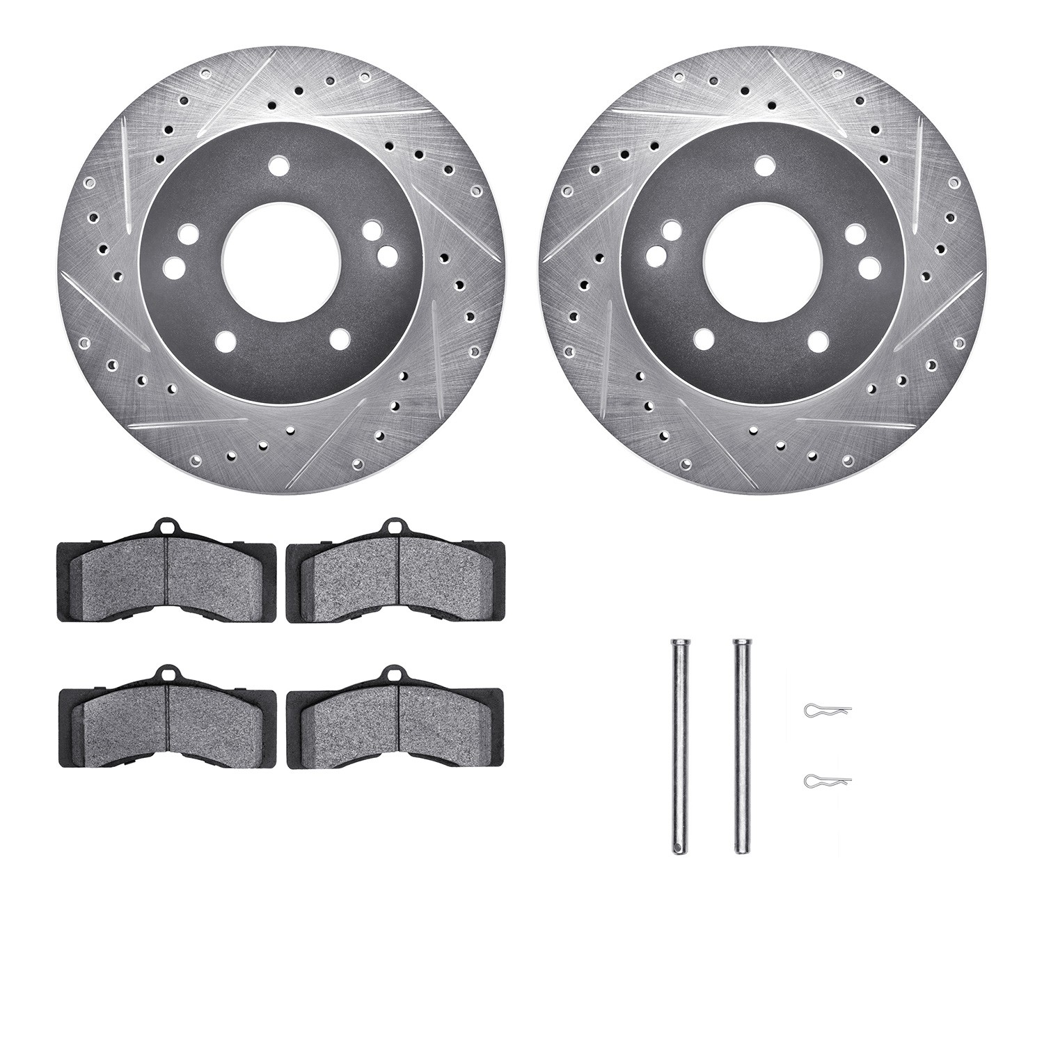 - DFC Brake Rotor - Drilled & Slotted - Silver- HD Brake Pad - Hardware