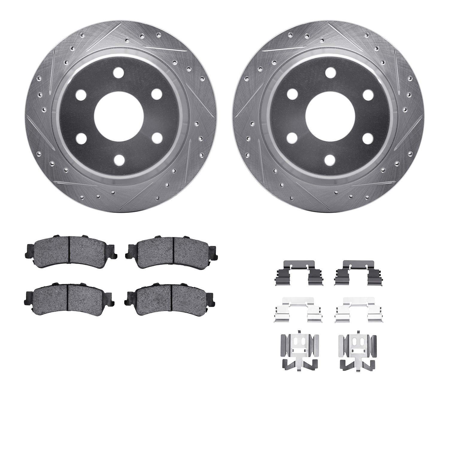 - DFC Brake Rotor - Drilled & Slotted - Silver- HD Brake Pad - Hardware