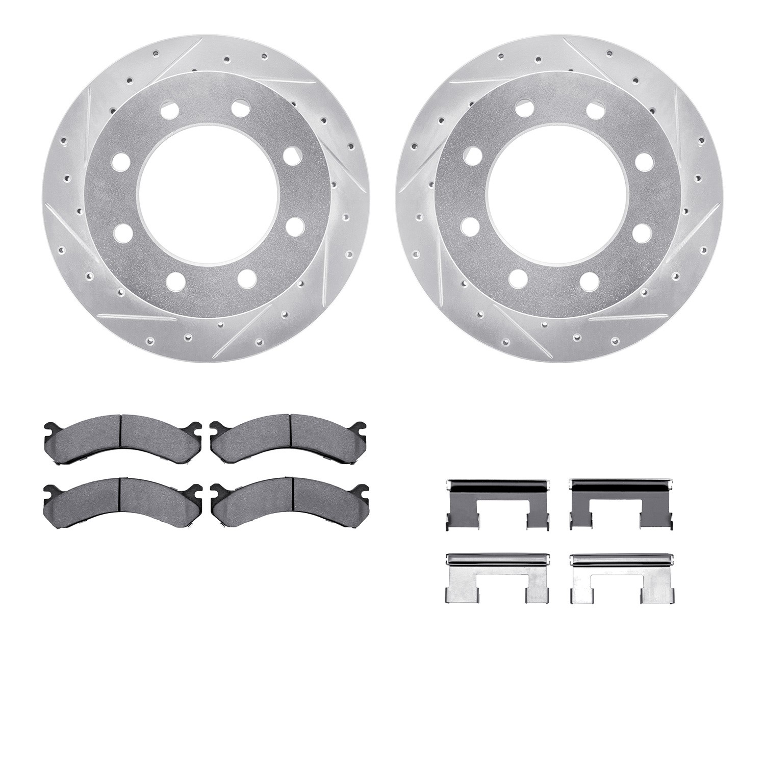 - DFC Brake Rotor - Drilled & Slotted - Silver- HD Brake Pad - Hardware