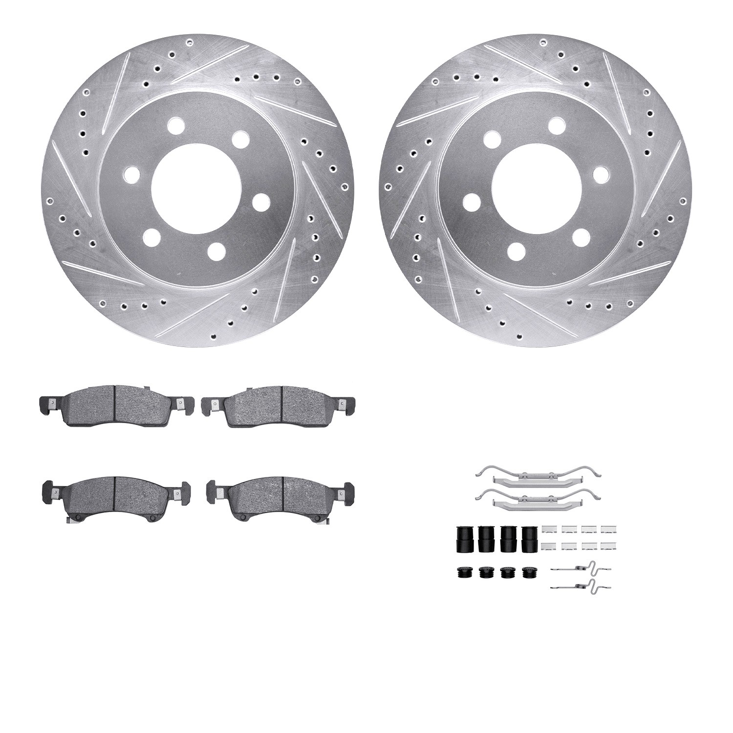 - DFC Brake Rotor - Drilled & Slotted - Silver- HD Brake Pad - Hardware