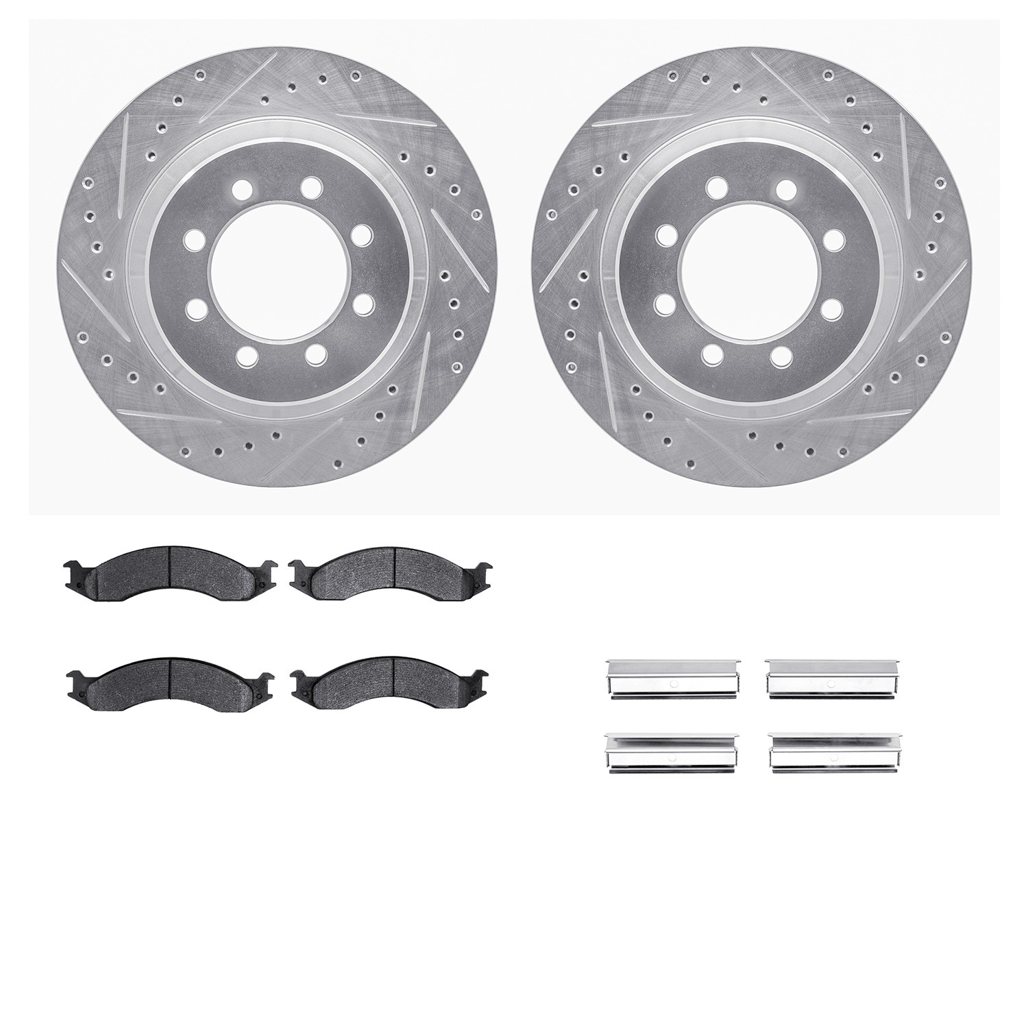 - DFC Brake Rotor - Drilled & Slotted - Silver- HD Brake Pad - Hardware