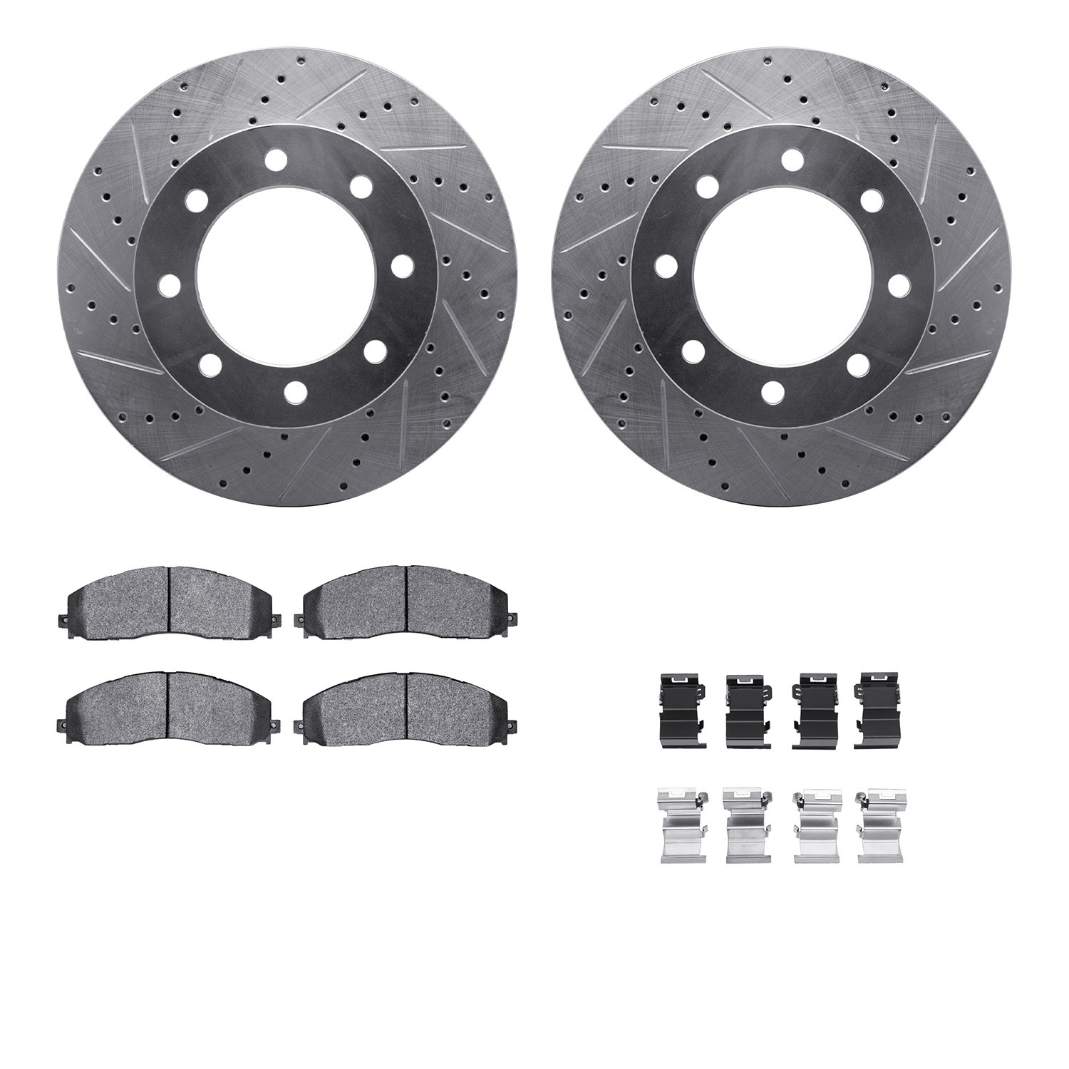 - DFC Brake Rotor - Drilled & Slotted - Silver- HD Brake Pad - Hardware