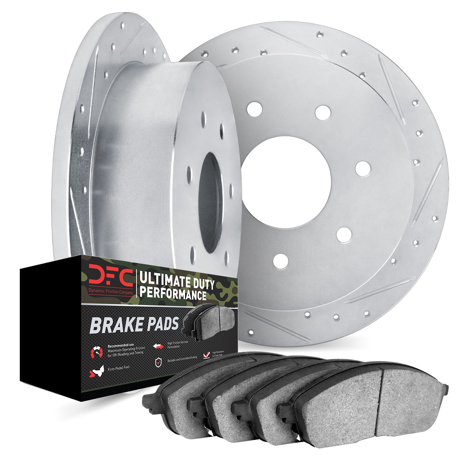 - DFC Brake Rotor - Drilled & Slotted - Silver- HD Brake Pad