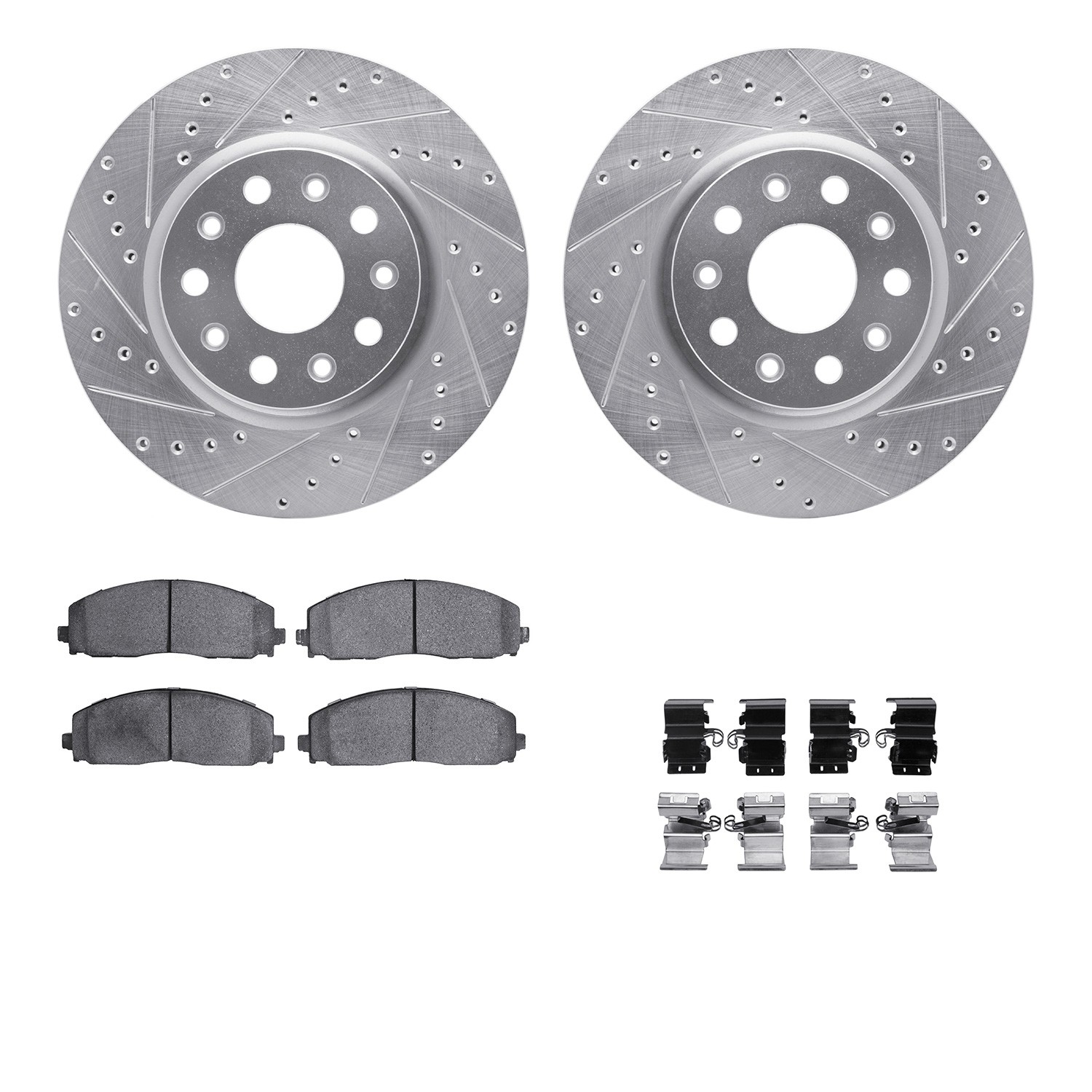 - DFC Brake Rotor - Drilled & Slotted - Silver- HD Brake Pad - Hardware