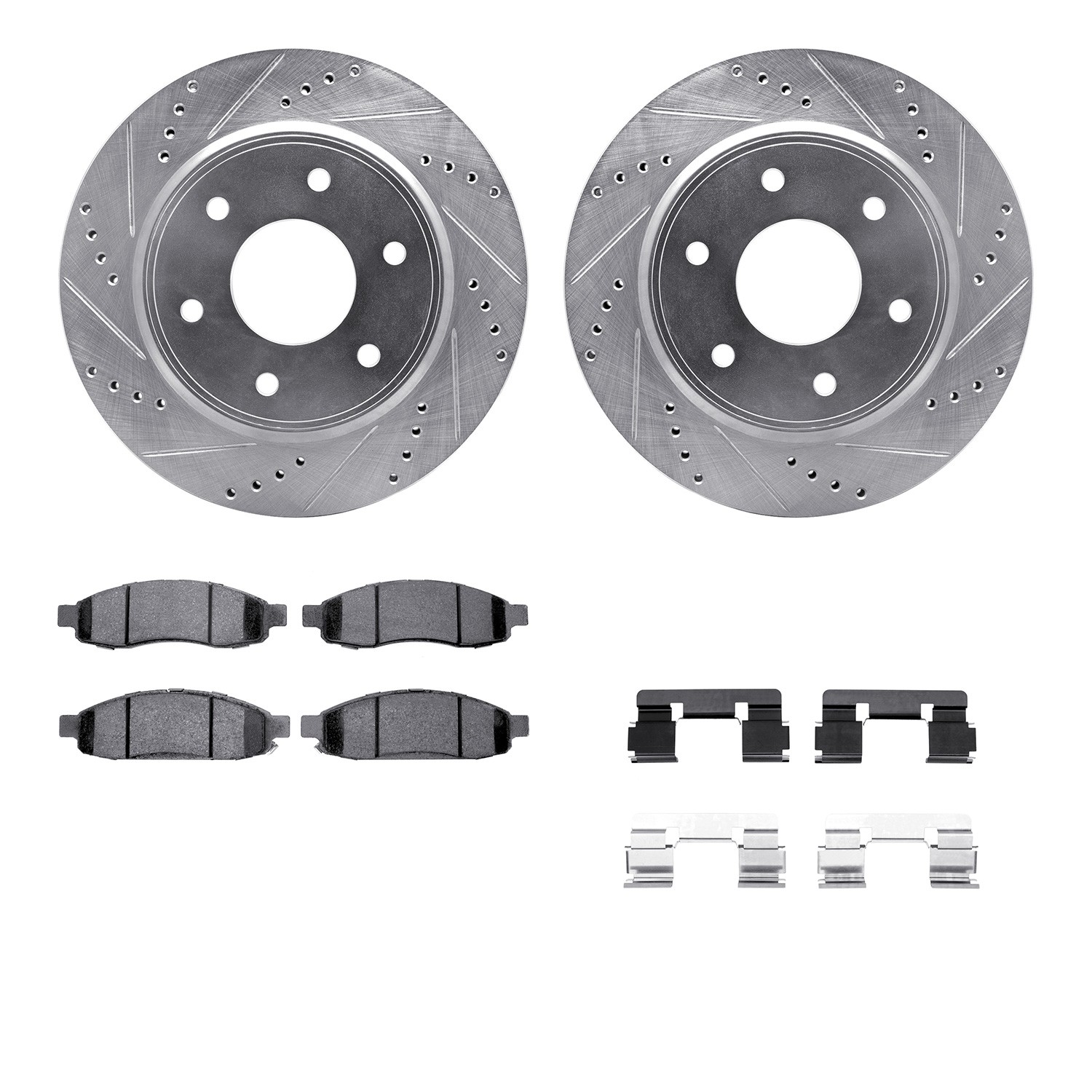 - DFC Brake Rotor - Drilled & Slotted - Silver- HD Brake Pad - Hardware