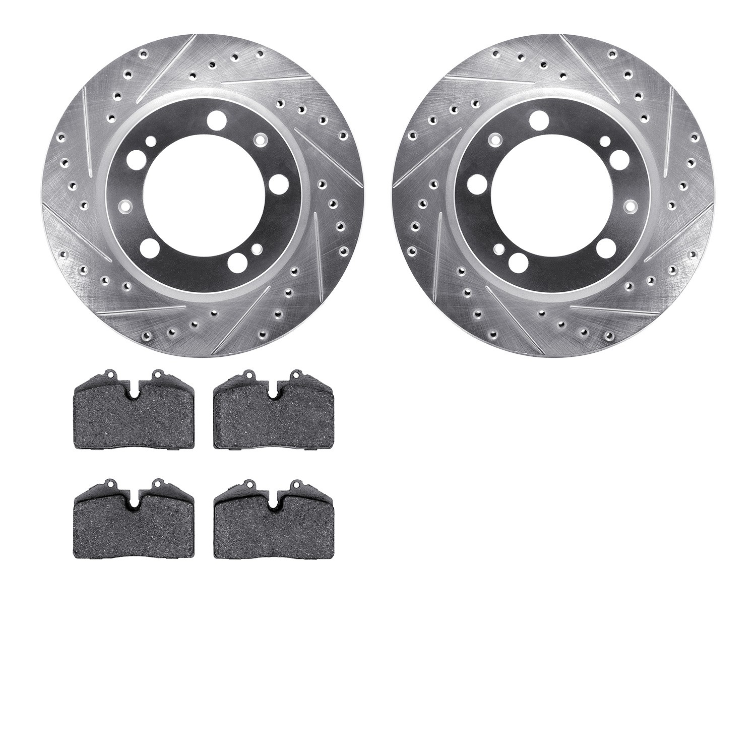 - DFC Rotors-Drilled and Slotted-Silver with 5000 Advanced Brake Pads