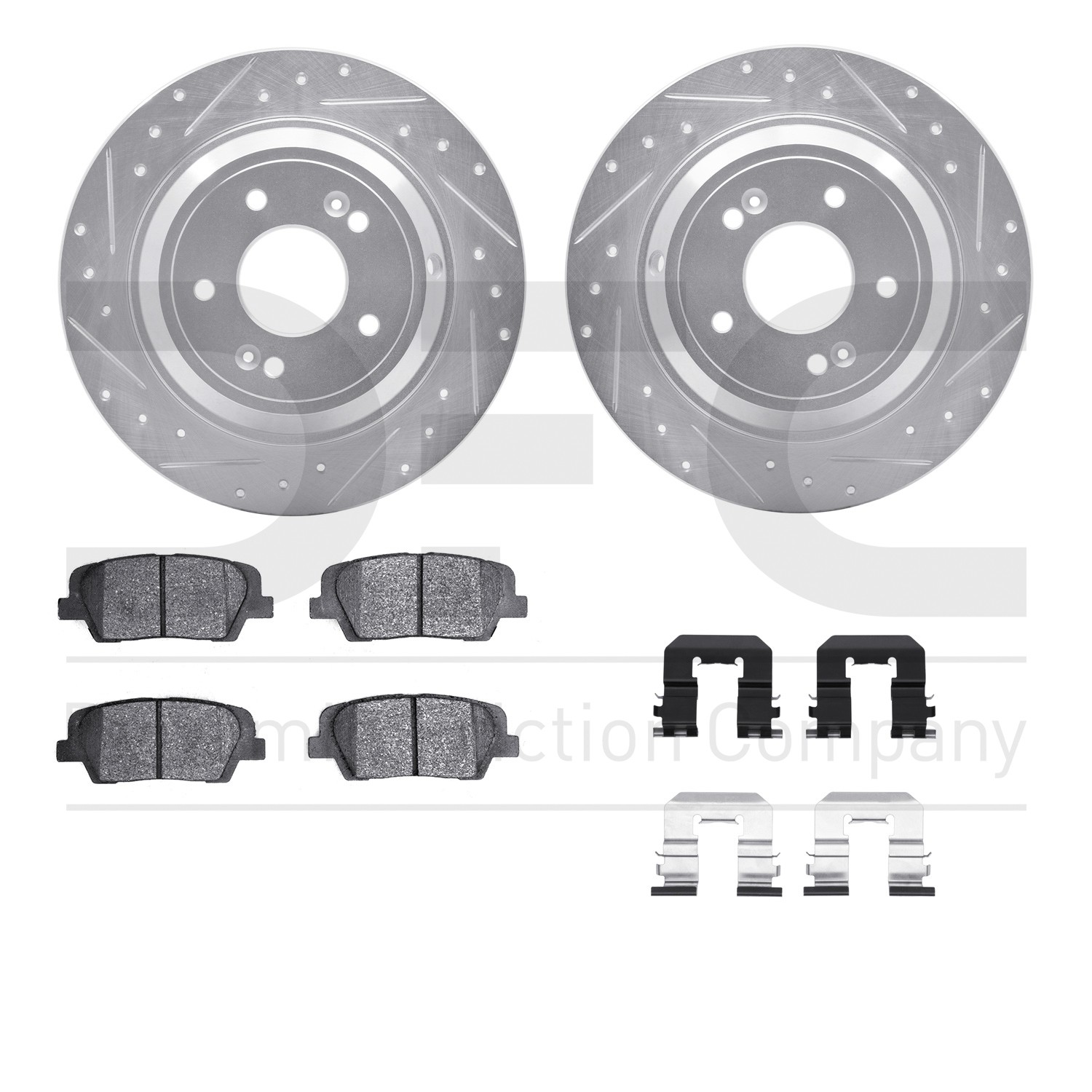 - DFC Rotors-Drilled & Slotted-Silver w/ 5000 Advanced Brake Pads Incl Hdw
