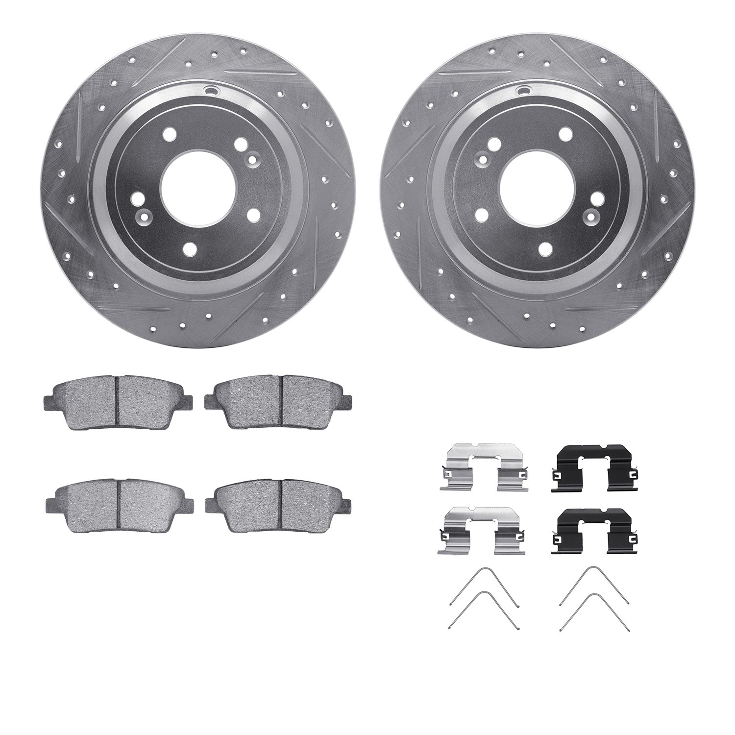 - DFC Rotors-Drilled & Slotted-Silver w/ 5000 Advanced Brake Pads Incl Hdw