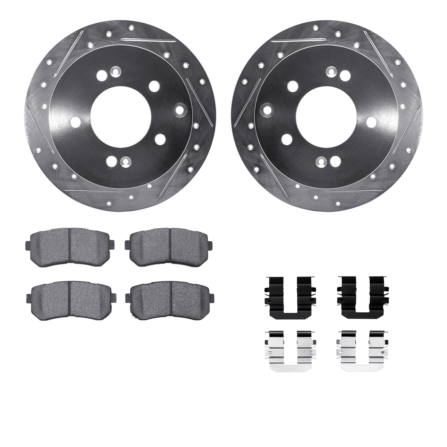 - DFC Rotors-Drilled & Slotted-Silver w/ 5000 Advanced Brake Pads Incl Hdw