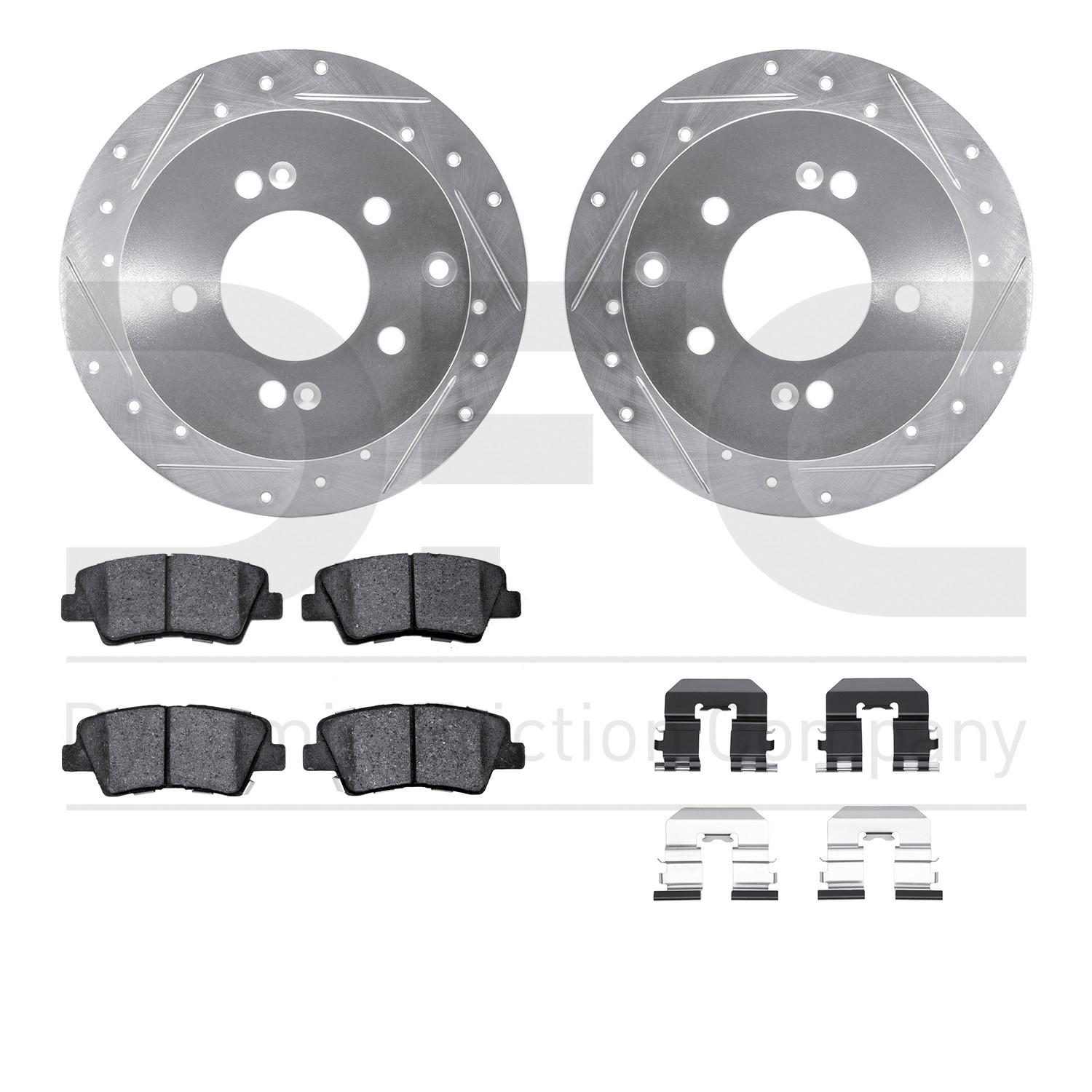 - DFC Rotors-Drilled & Slotted-Silver w/ 5000 Advanced Brake Pads Incl Hdw