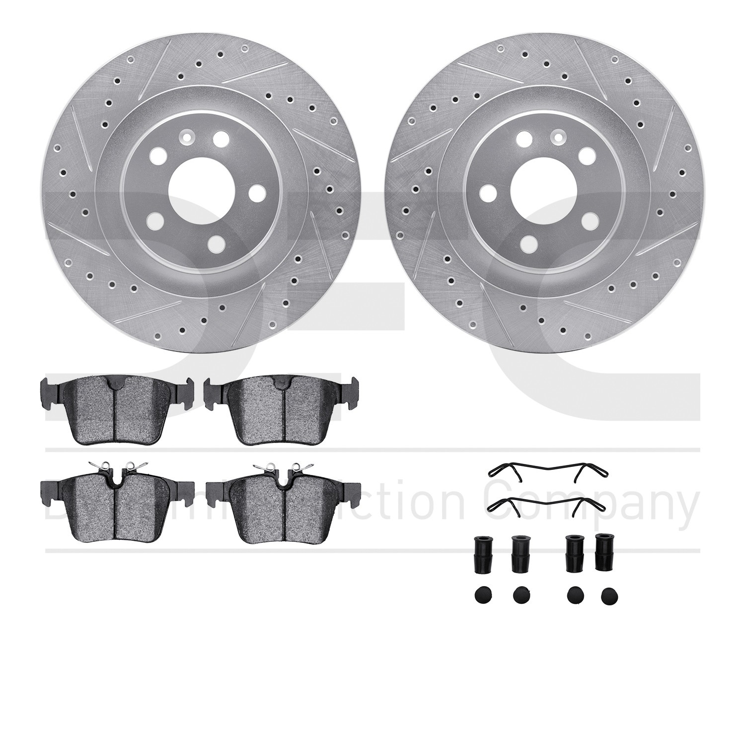 - DFC Rotors-Drilled & Slotted-Silver w/ 5000 Advanced Brake Pads Incl Hdw
