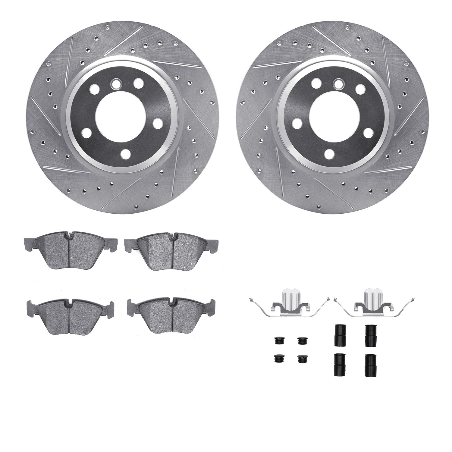 - DFC Brake Rotor - Dimpled & Slotted - Silver w/5000 Brake Pads & HW Kit