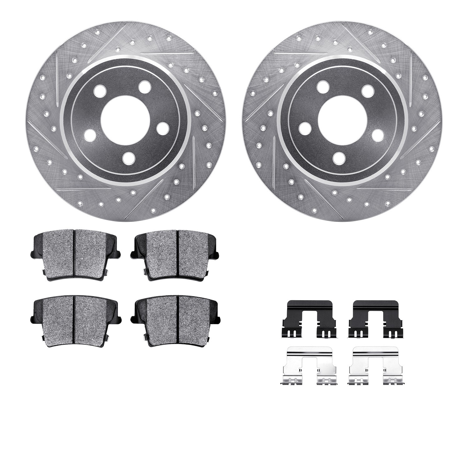 - DFC Rotors-Drilled & Slotted-Silver w/ 5000 Advanced Brake Pads Incl Hdw