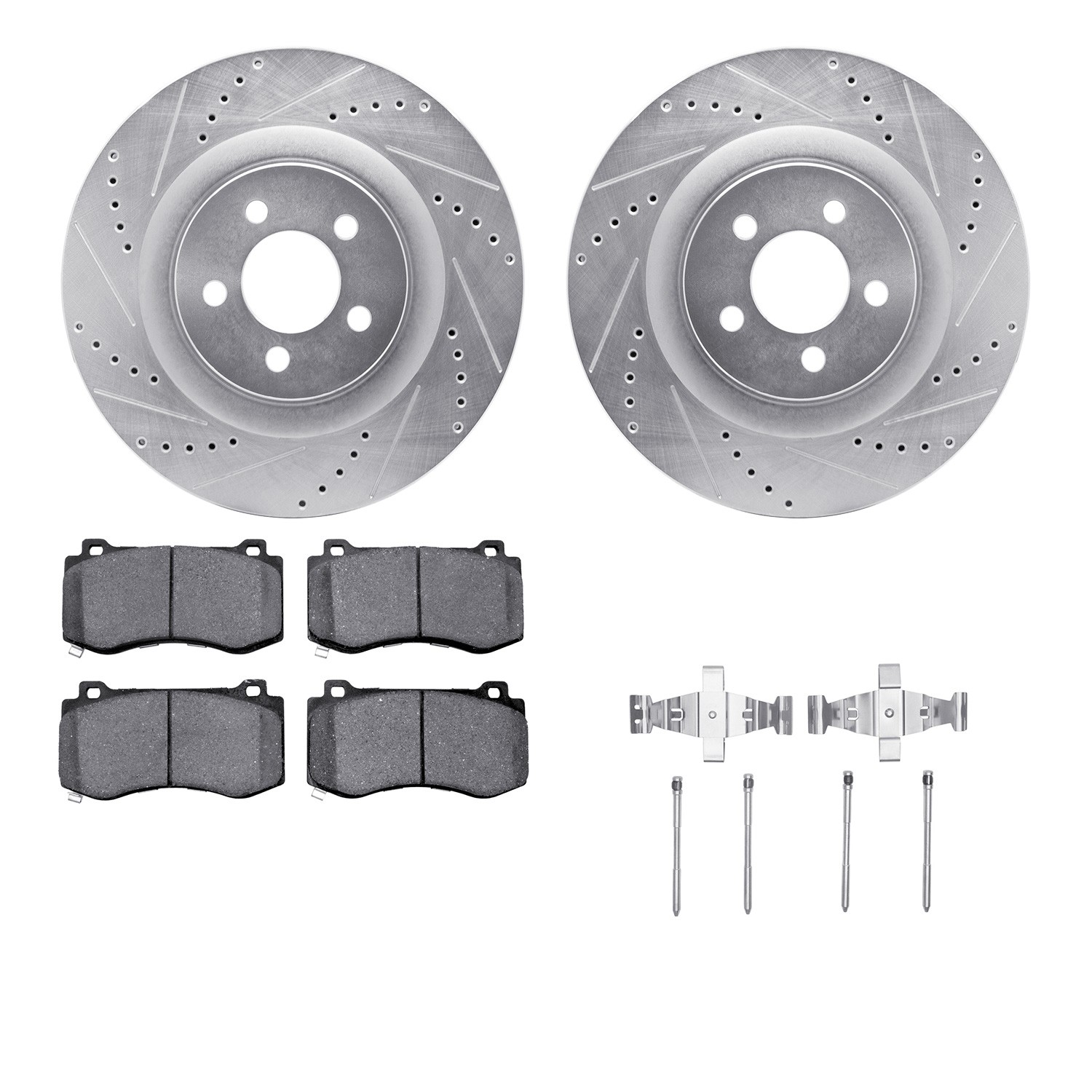 - DFC Rotors-Drilled & Slotted-Silver w/ 5000 Advanced Brake Pads Incl Hdw