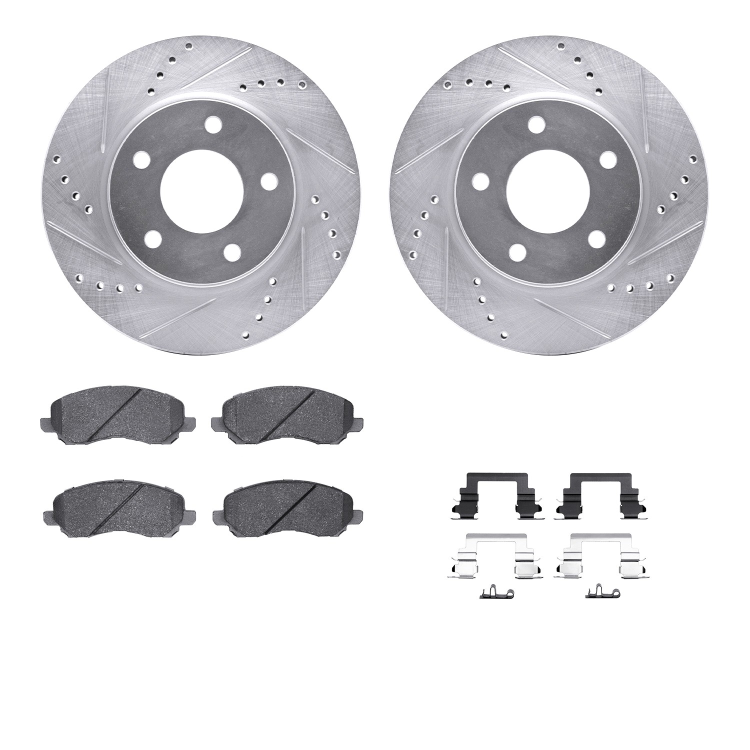 - DFC Rotors-Drilled & Slotted-Silver w/ 5000 Advanced Brake Pads Incl Hdw