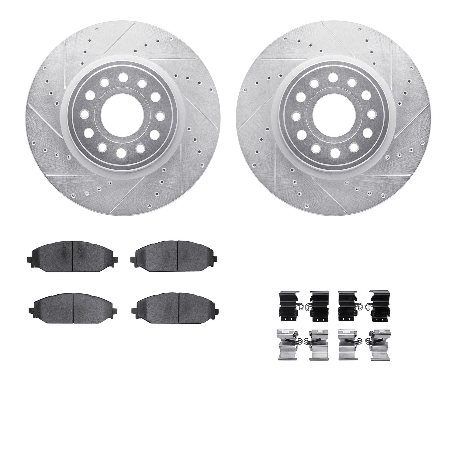 - DFC Rotors-Drilled & Slotted-Silver w/ 5000 Advanced Brake Pads Incl Hdw