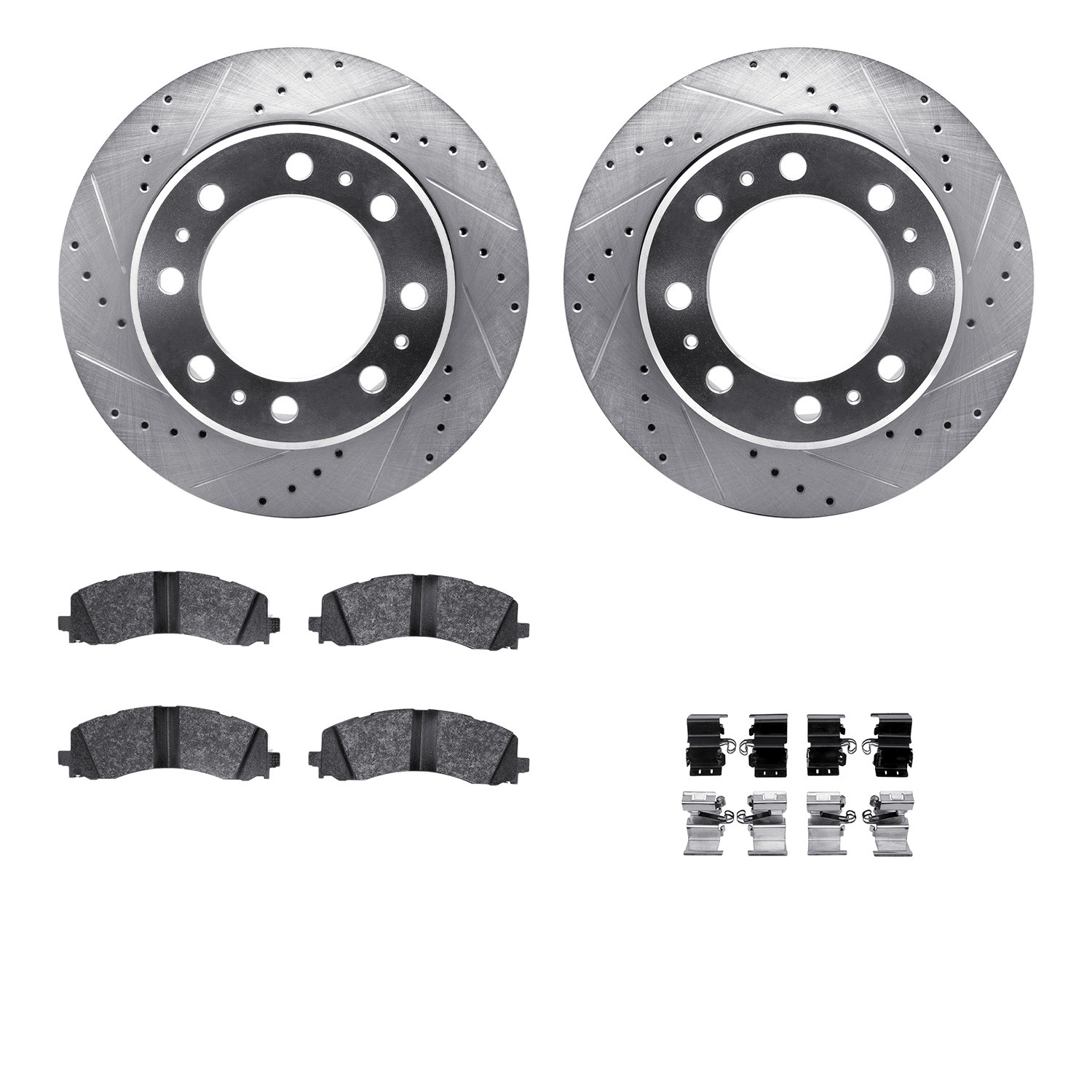 - DFC Rotors-Drilled & Slotted-Silver w/ 5000 Advanced Brake Pads Incl Hdw