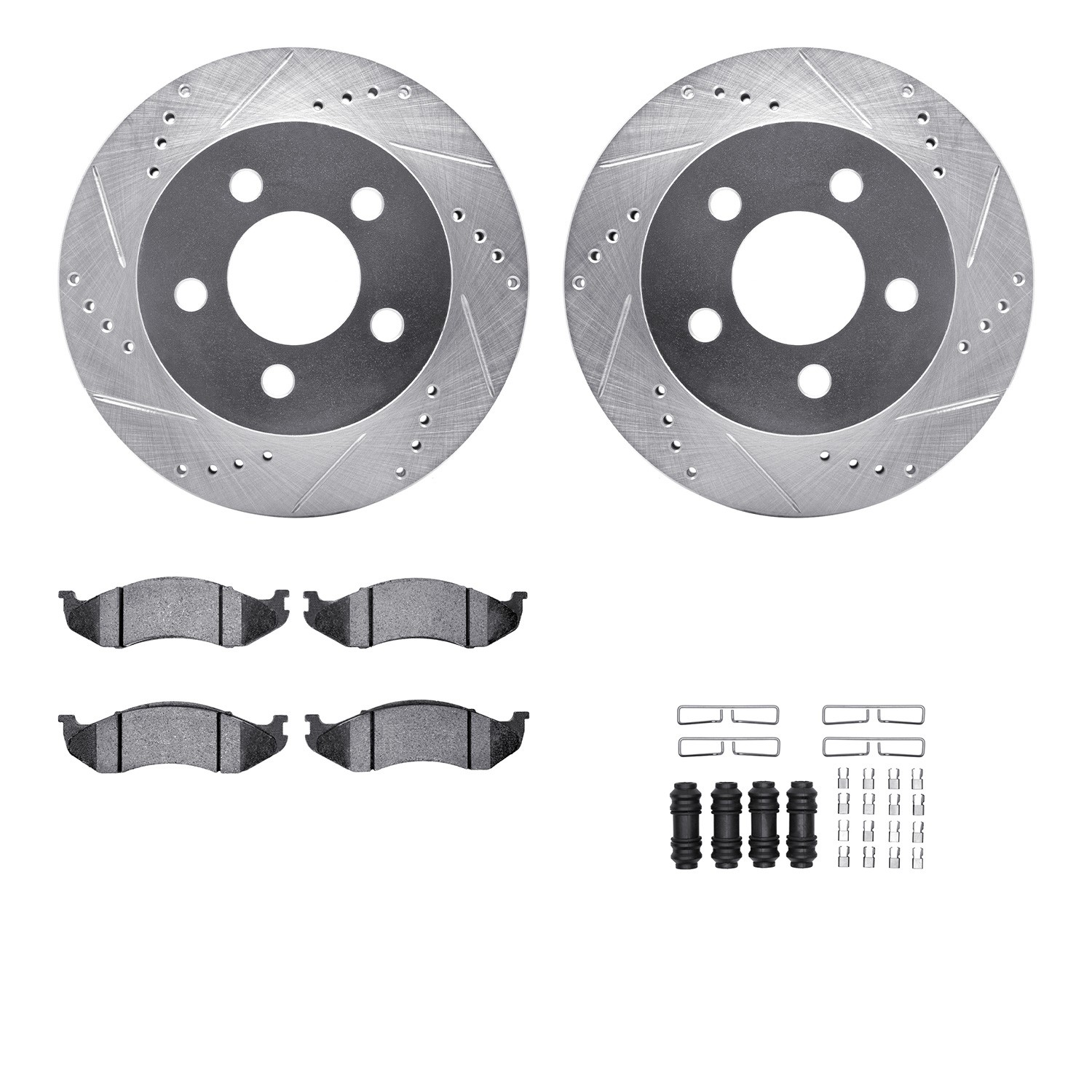 - DFC Brake Rotor - Drilled & Slotted - Silver w/5000 Brake Pads & HW Kit