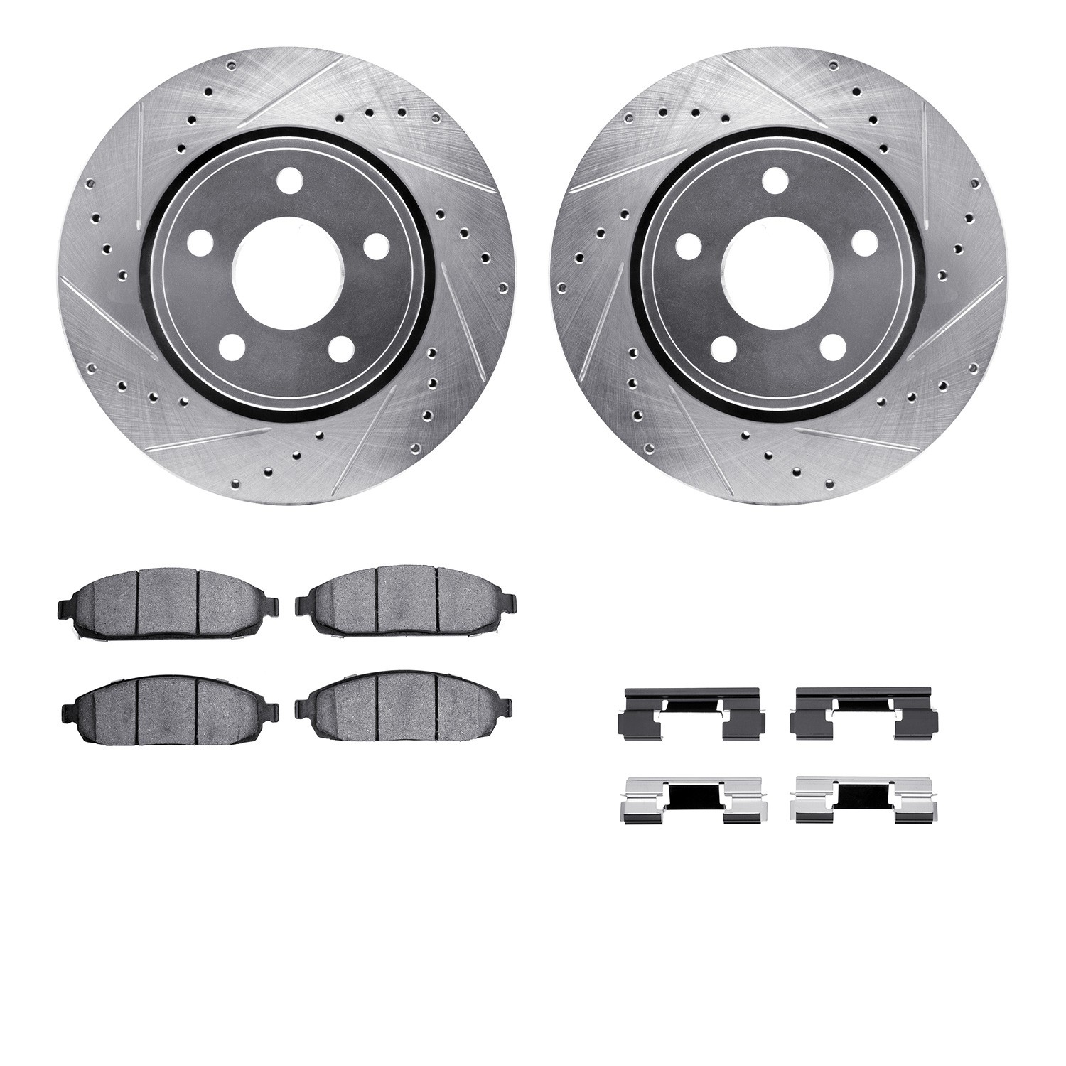 - DFC Brake Rotor - Dimpled & Slotted - Silver w/5000 Brake Pads & HW Kit