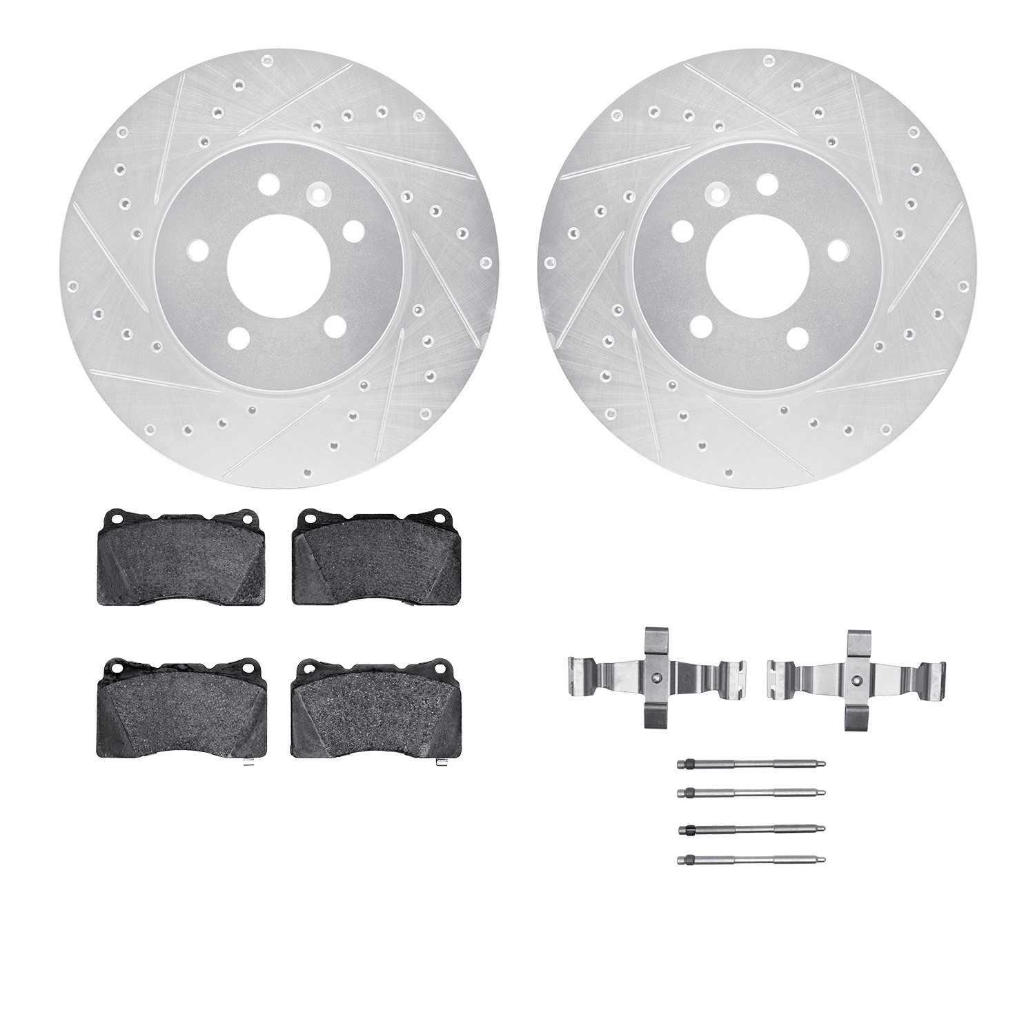 - DFC Rotors-Drilled & Slotted-Silver w/ 5000 Advanced Brake Pads Incl Hdw