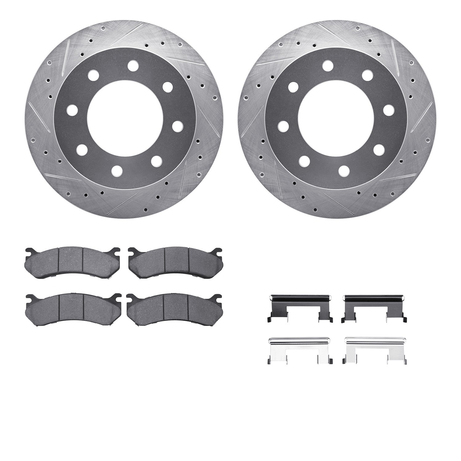 - DFC Brake Rotor - Dimpled & Slotted - Silver w/5000 Brake Pads & HW Kit