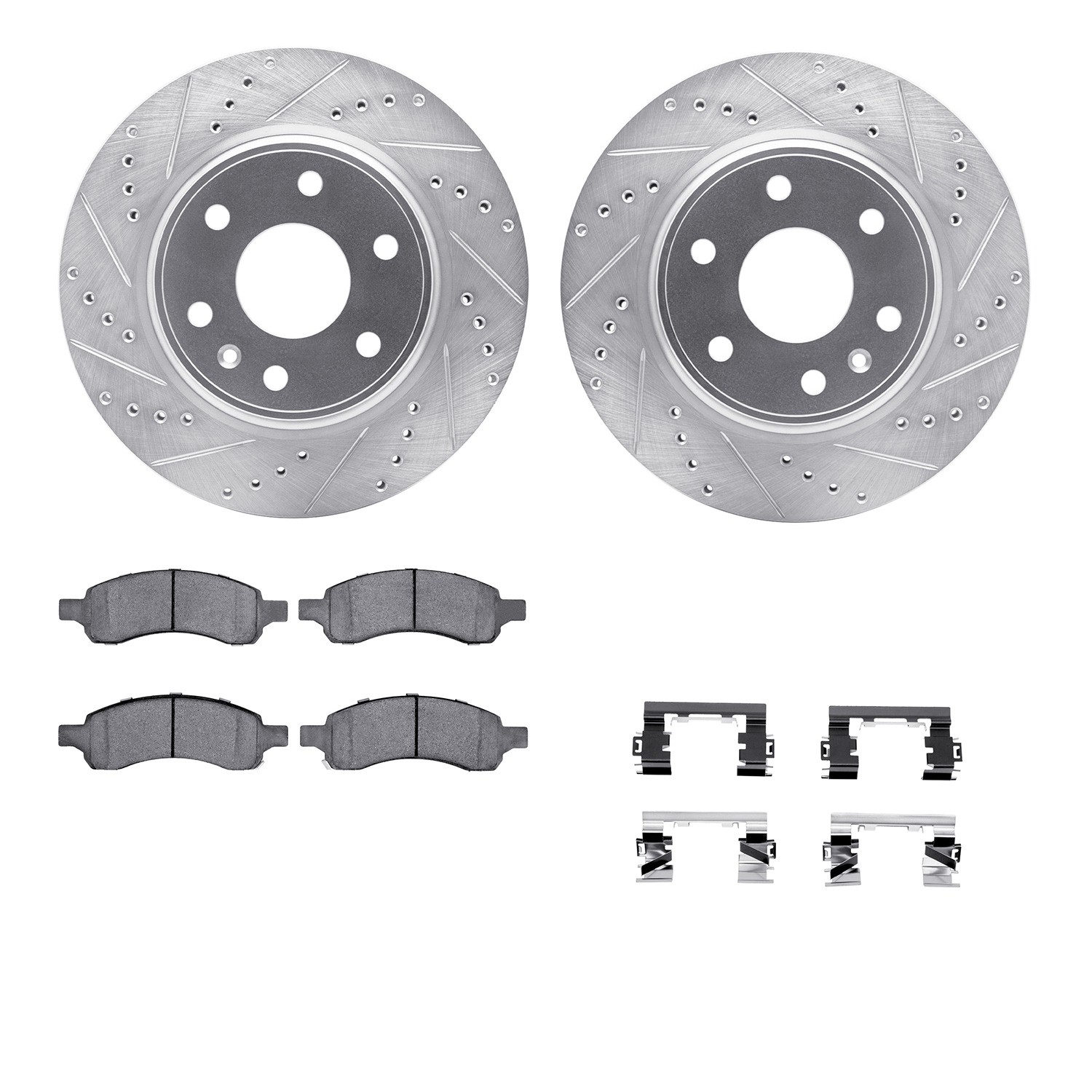 - DFC Brake Rotor - Dimpled & Slotted - Silver w/5000 Brake Pads & HW Kit