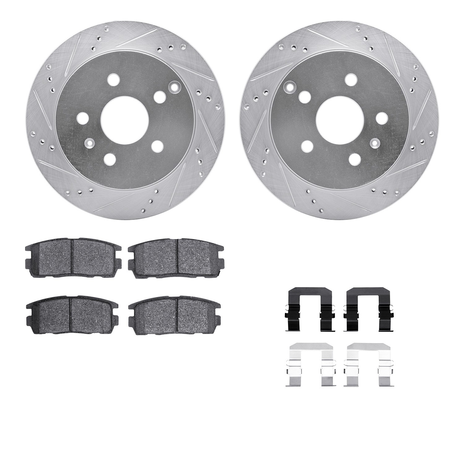 - DFC Brake Rotor - Dimpled & Slotted - Silver w/5000 Brake Pads & HW Kit