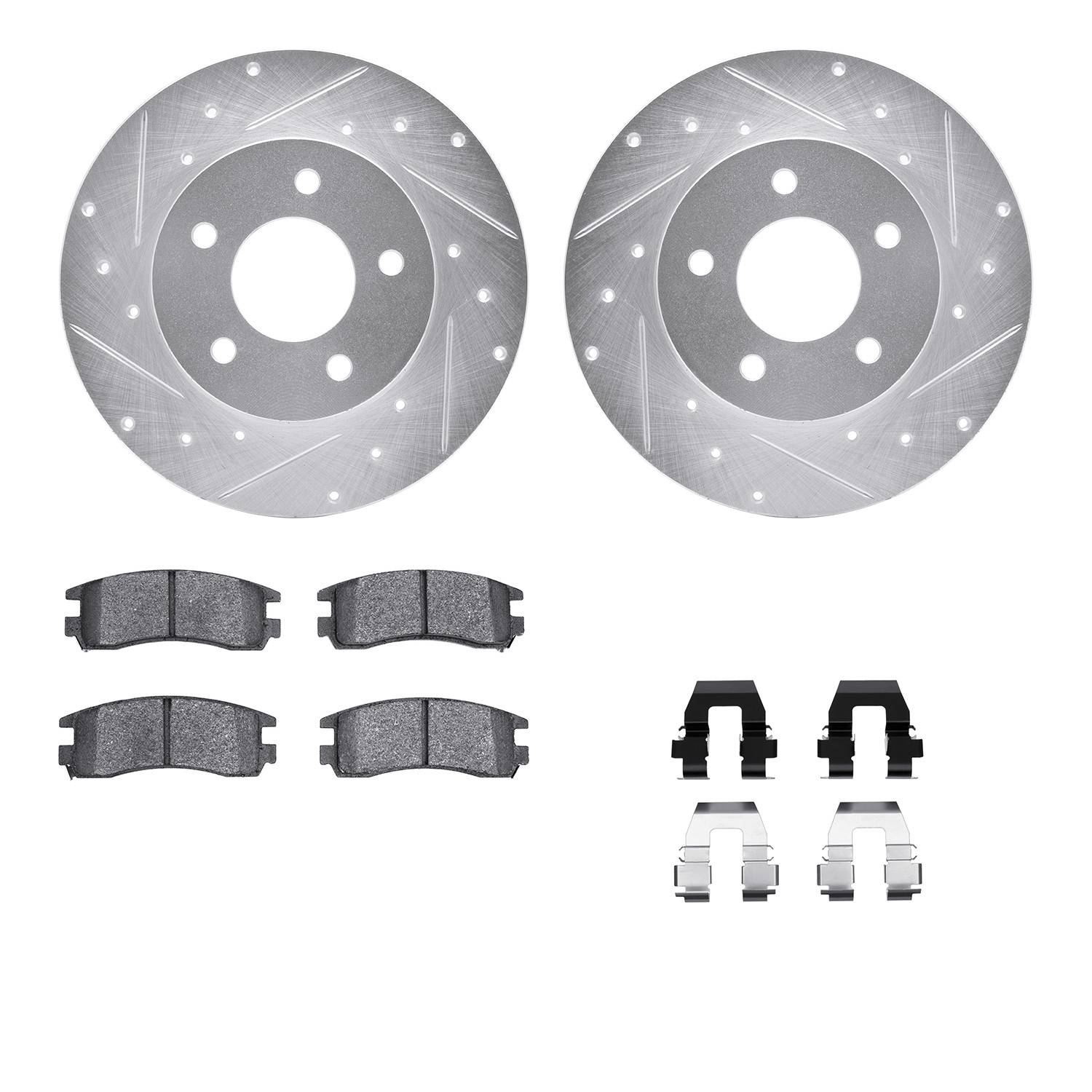 - DFC Rotors-Drilled & Slotted-Silver w/ 5000 Advanced Brake Pads Incl Hdw