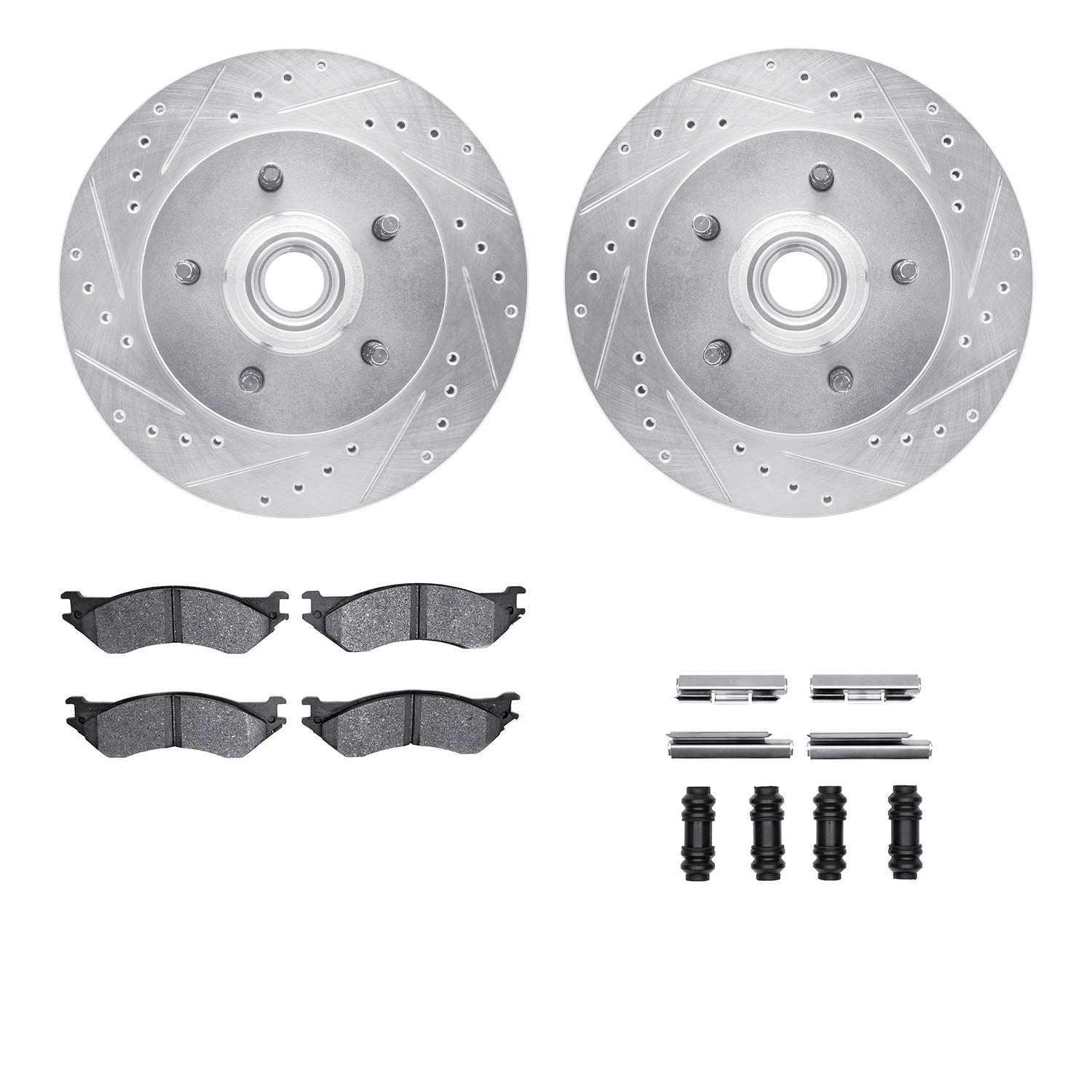 - DFC Brake Rotor - Drilled & Slotted - Silver w/5000 Brake Pads & HW Kit