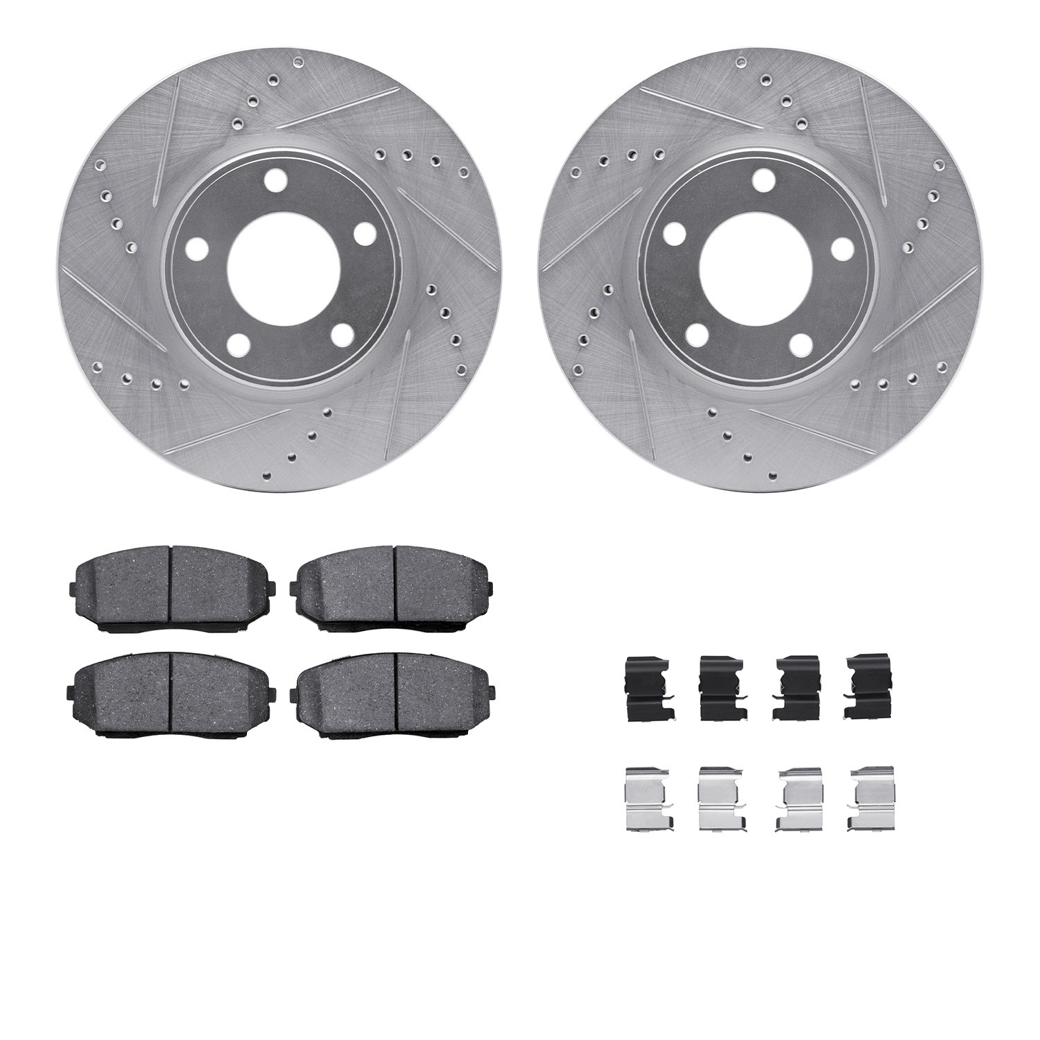 - DFC Brake Rotor - Dimpled & Slotted - Silver w/5000 Brake Pads & HW Kit