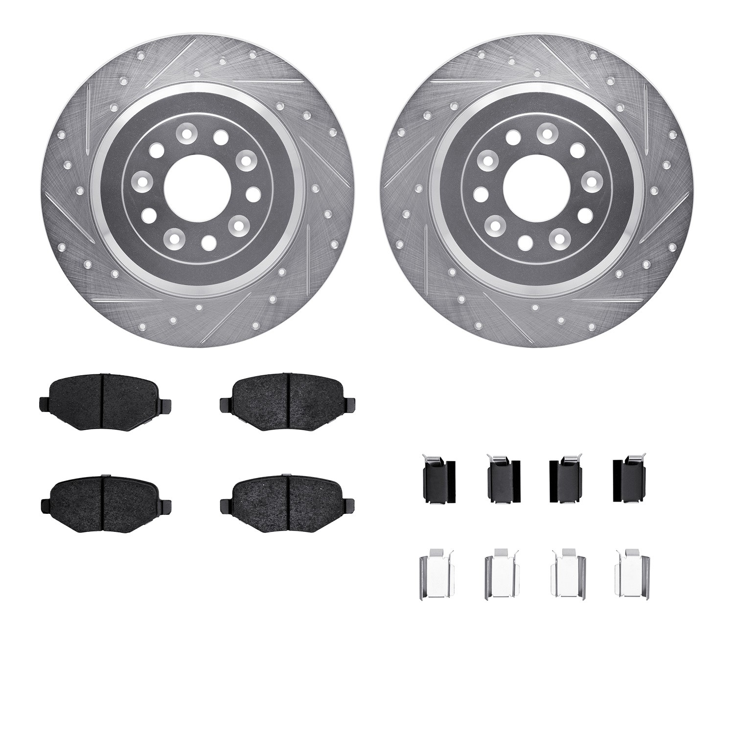 - DFC Brake Rotor - Dimpled & Slotted - Silver w/5000 Brake Pads & HW Kit