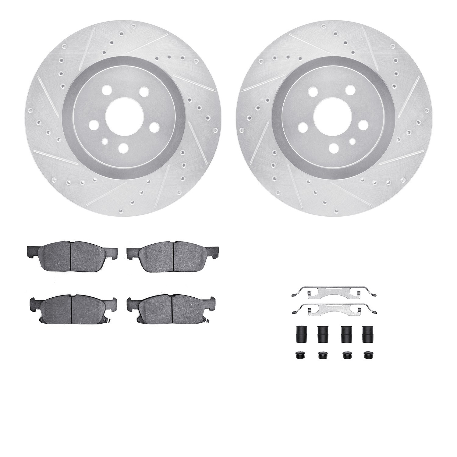 - DFC Brake Rotor - Dimpled & Slotted - Silver w/5000 Brake Pads & HW Kit