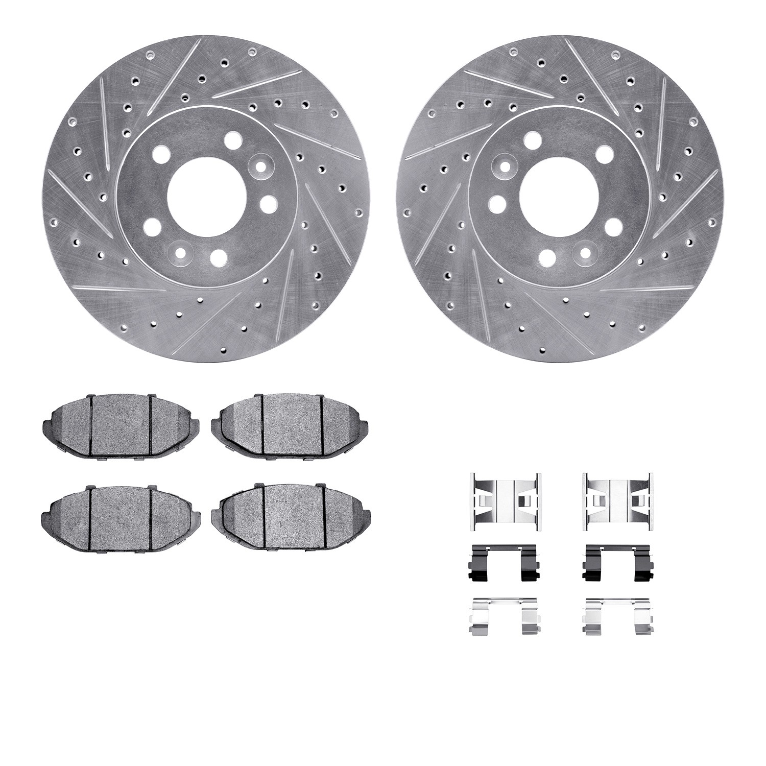 - DFC Rotors-Drilled & Slotted-Silver w/ 5000 Advanced Brake Pads Incl Hdw