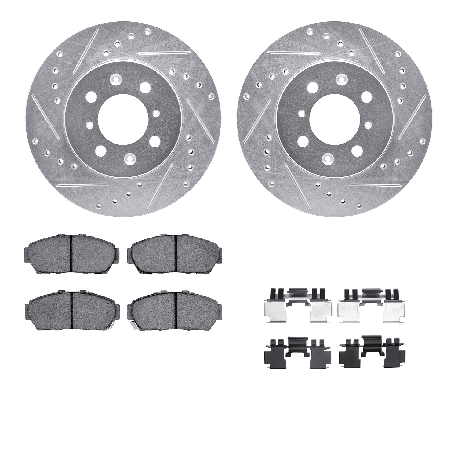 - DFC Rotors-Drilled & Slotted-Silver w/ 5000 Advanced Brake Pads Incl Hdw
