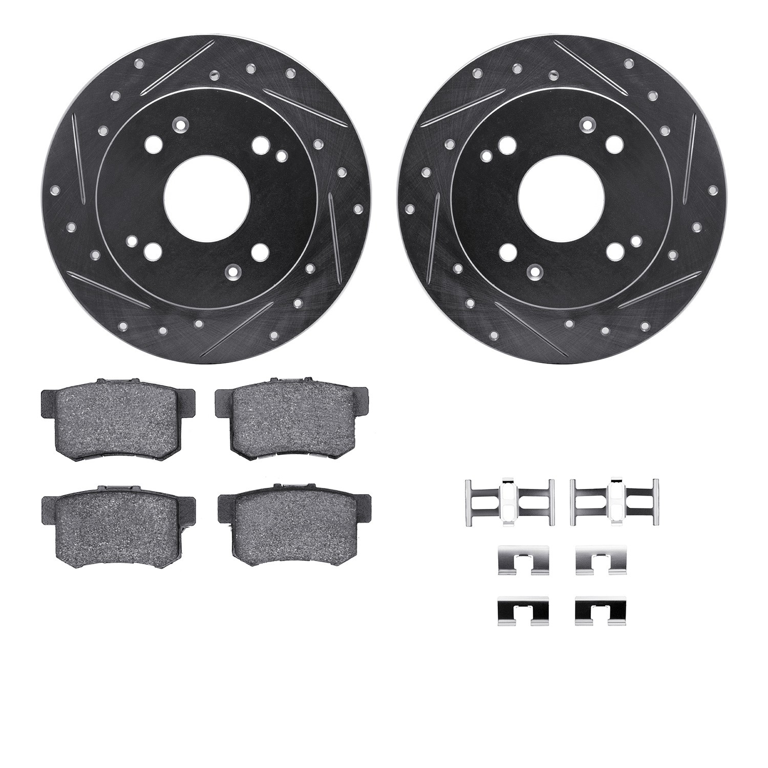 - DFC Rotors-Drilled & Slotted-Silver w/ 5000 Advanced Brake Pads Incl Hdw