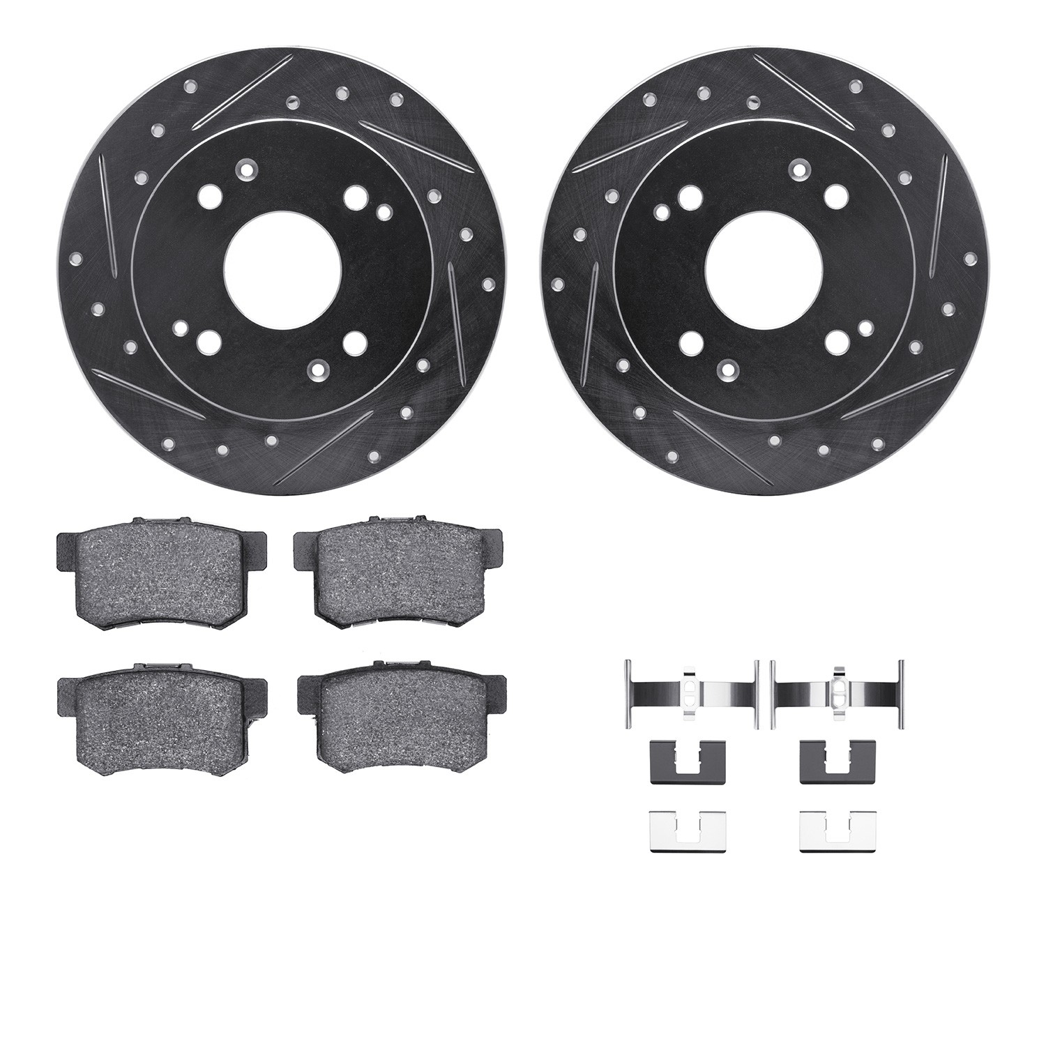 - DFC Rotors-Drilled & Slotted-Silver w/ 5000 Advanced Brake Pads Incl Hdw